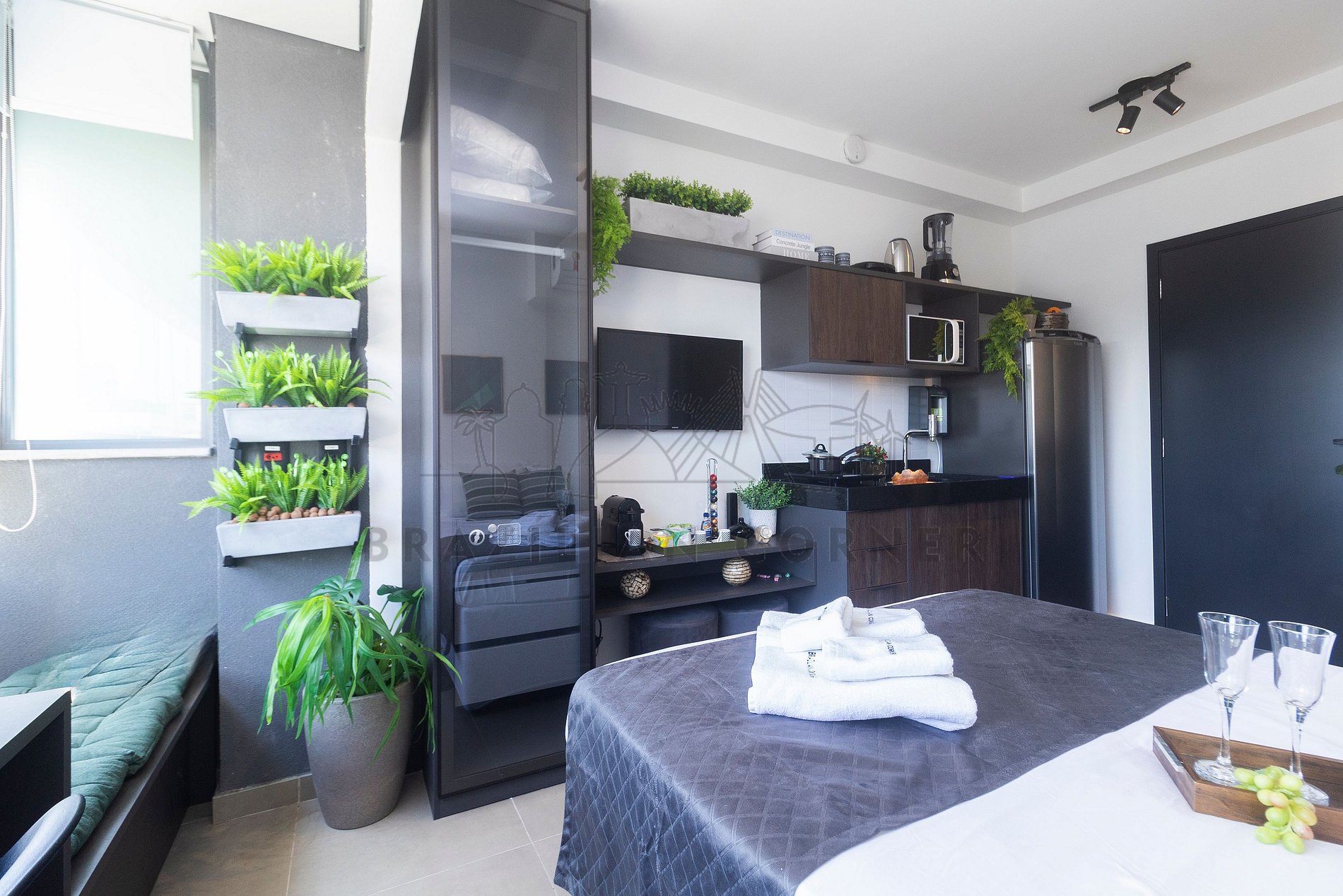 The property is managed by Brazilian Corner, a national company that offers its clients, whether traveling for leisure or business, the experience of renting unique properties for a season. The residences are designed to provide great comfort. Our office is located in the Vila Madalena neighborhood in São Paulo. Since 2018, Brazilian Corner has been a pioneer in its field, as it not only provides well-structured properties but is also responsible for all logistics and basic supplies that make up each of its residences, making them extremely functional. Our great differential is good communication and the seriousness with which we act to resolve any issues that may arise before, during, and/or after our clients' stay. Our employees are trained and have the necessary tools to provide an excellent level of service. Apartments and houses are cleaned by our specialized teams, our bed and bath linens are of high quality, and they are washed and sanitized in professional laundries. We maintain professionalism in everything we do to ensure the tranquility and trust of our clients.