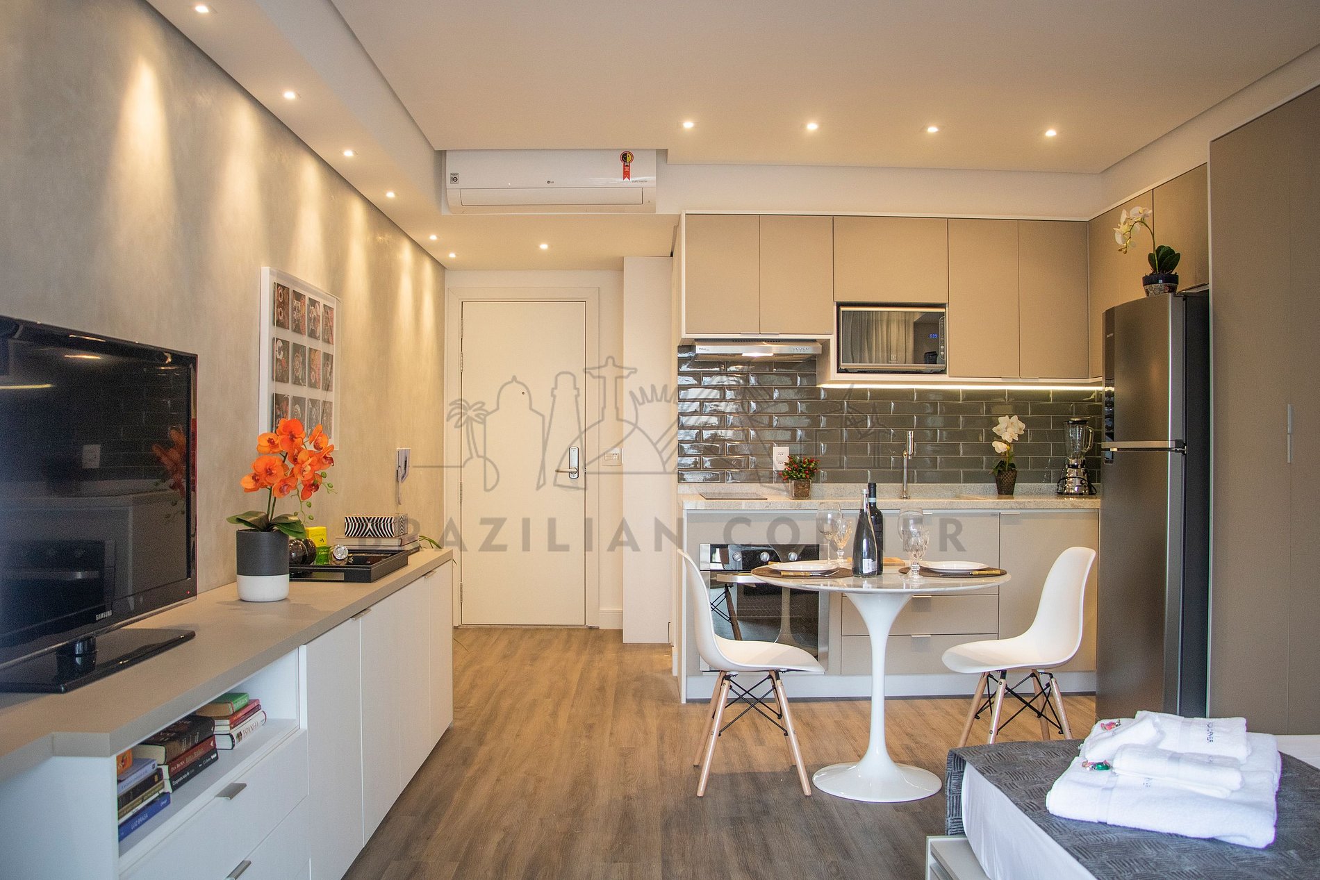 The apartments are very well-equipped with air conditioning, Smart TV, safe, Nespresso machine, ultra-fast internet, a complete kitchen with all the necessary utensils for a comfortable and comprehensive stay. The building features a swimming pool, gym, sauna, laundry facilities, coworking space, and parking spot. It also boasts a strategic location in the Bela Cintra neighborhood, downtown São Paulo, close to Oscar Freire Street, Republic Square, and various tourist attractions, such as the Itália Building, Copan Building, and the Renault Theater.