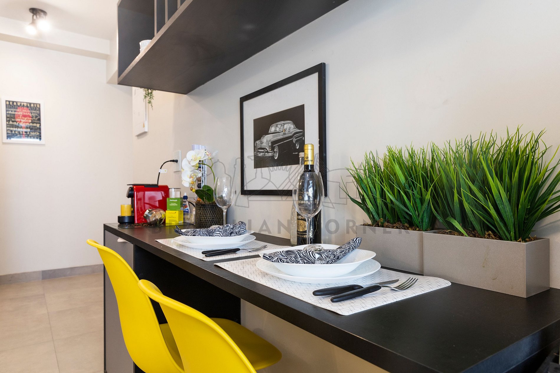 The modern building is located near Republica metro station (integrated with Red Line 3 and Yellow Line 4). The studios are well-equipped with a 43" Smart TV, air conditioning, blackout curtains, ultra-fast internet, digital lock, fully-equipped kitchen with Nespresso coffee machine, and a bathroom with a hairdryer and gas shower. The building provides amenities such as a pool, gym, sauna, laundry facilities, a small market, and a parking space for your convenience.