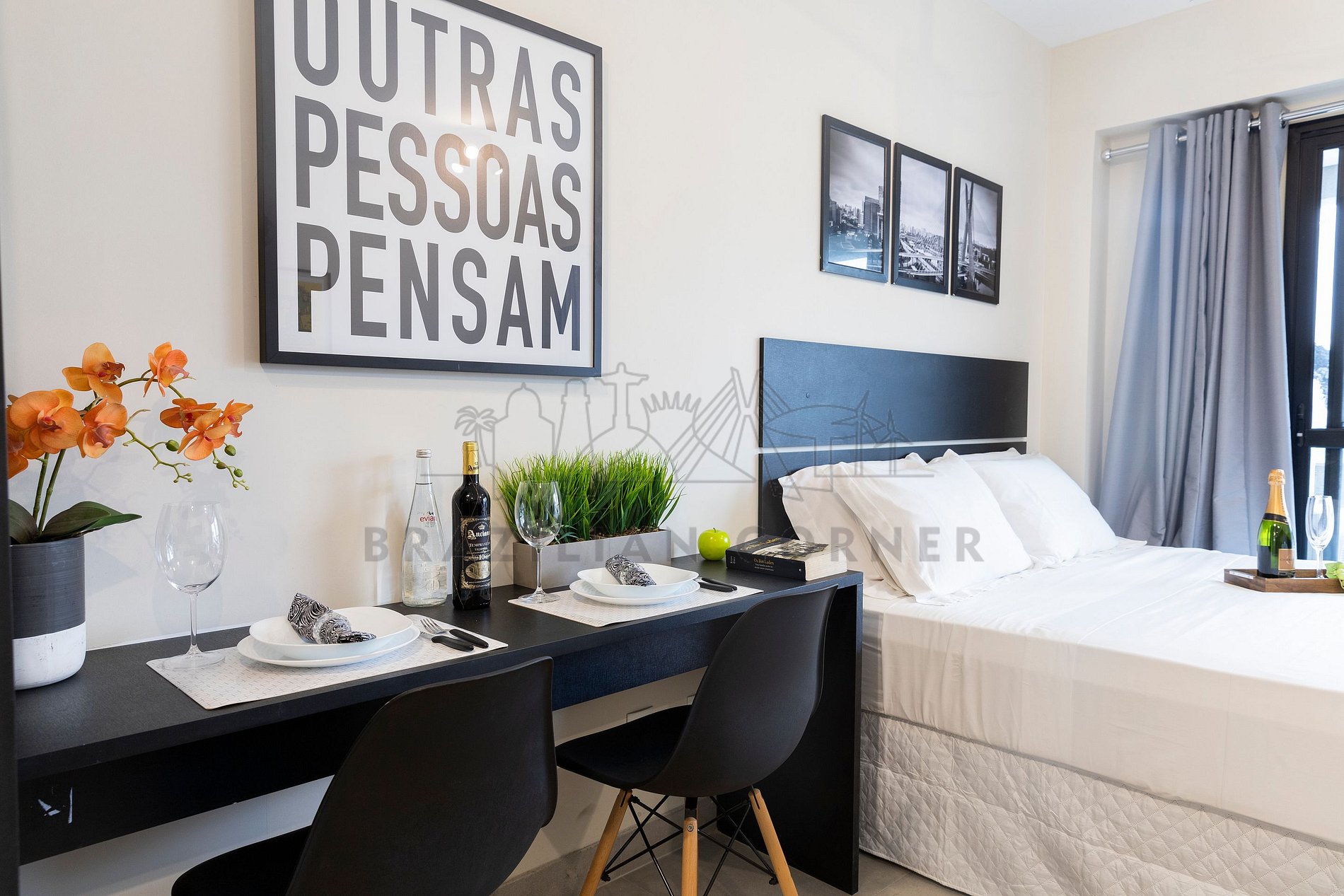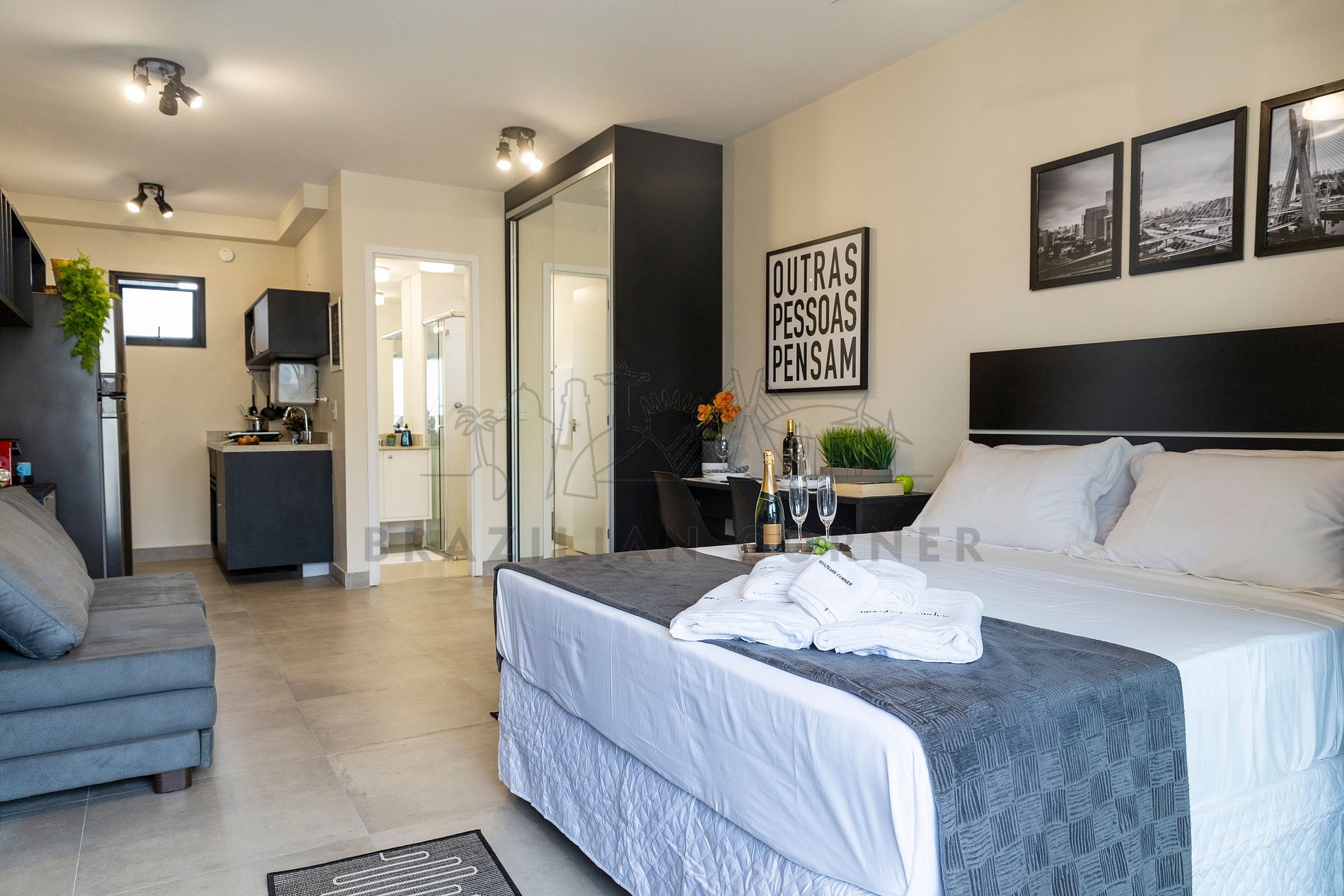 The property is managed by Brazilian Corner, a national company that offers its clients, whether traveling for leisure or business, the experience of renting unique properties for a season. The residences are planned to provide great comfort. Our office is located in the Vila Madalena neighborhood in São Paulo. Since 2018, Brazilian Corner has been a pioneer in its field, as it not only provides well-structured properties but is also responsible for all the logistics and basic supplies that make up each of its residences, making them extremely functional. Our key differentiator is good communication and the seriousness with which we work to resolve any issues that may arise before, during, and/or after our clients' stay. Our employees are trained and have the necessary tools to provide an excellent level of service. Apartments and houses are cleaned by our specialized teams, and our bed and bath linens are washed and sanitized in professional laundries. We maintain professionalism in everything we do to ensure the tranquility and confidence of our clients.