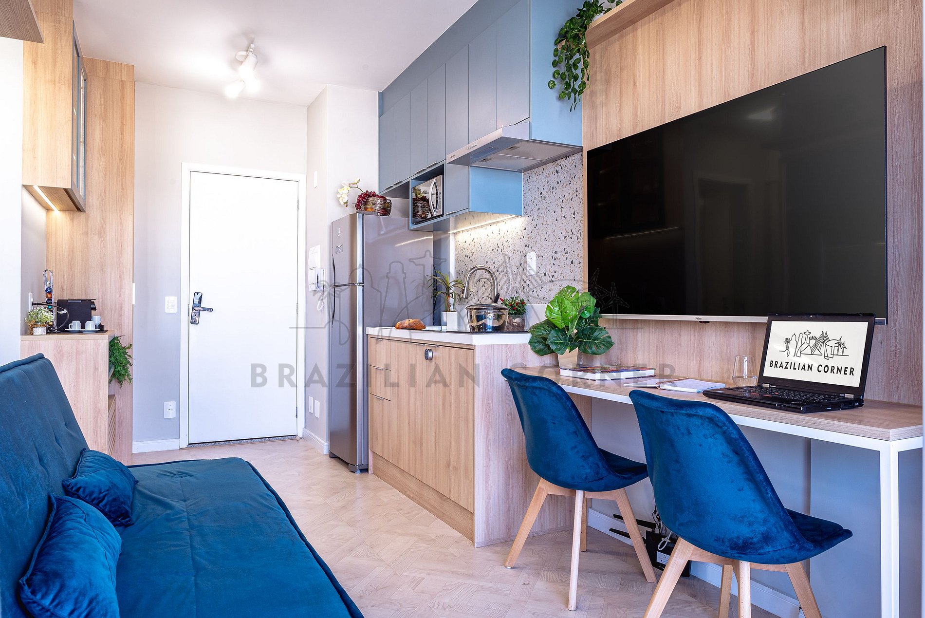 Property managed by the professional company Brazilian Corner, located near Vila Mariana station (Line 1 - Blue). It features an ideal space for a stay in São Paulo, well-equipped with a 43" Smart TV with Netflix, air conditioning, blackout curtains, ultra-fast internet, work desk, digital lock, full kitchen, and a balcony with city views. The bathroom boasts a great gas shower. The building offers a gym, pet-friendly space, and coworking facilities.