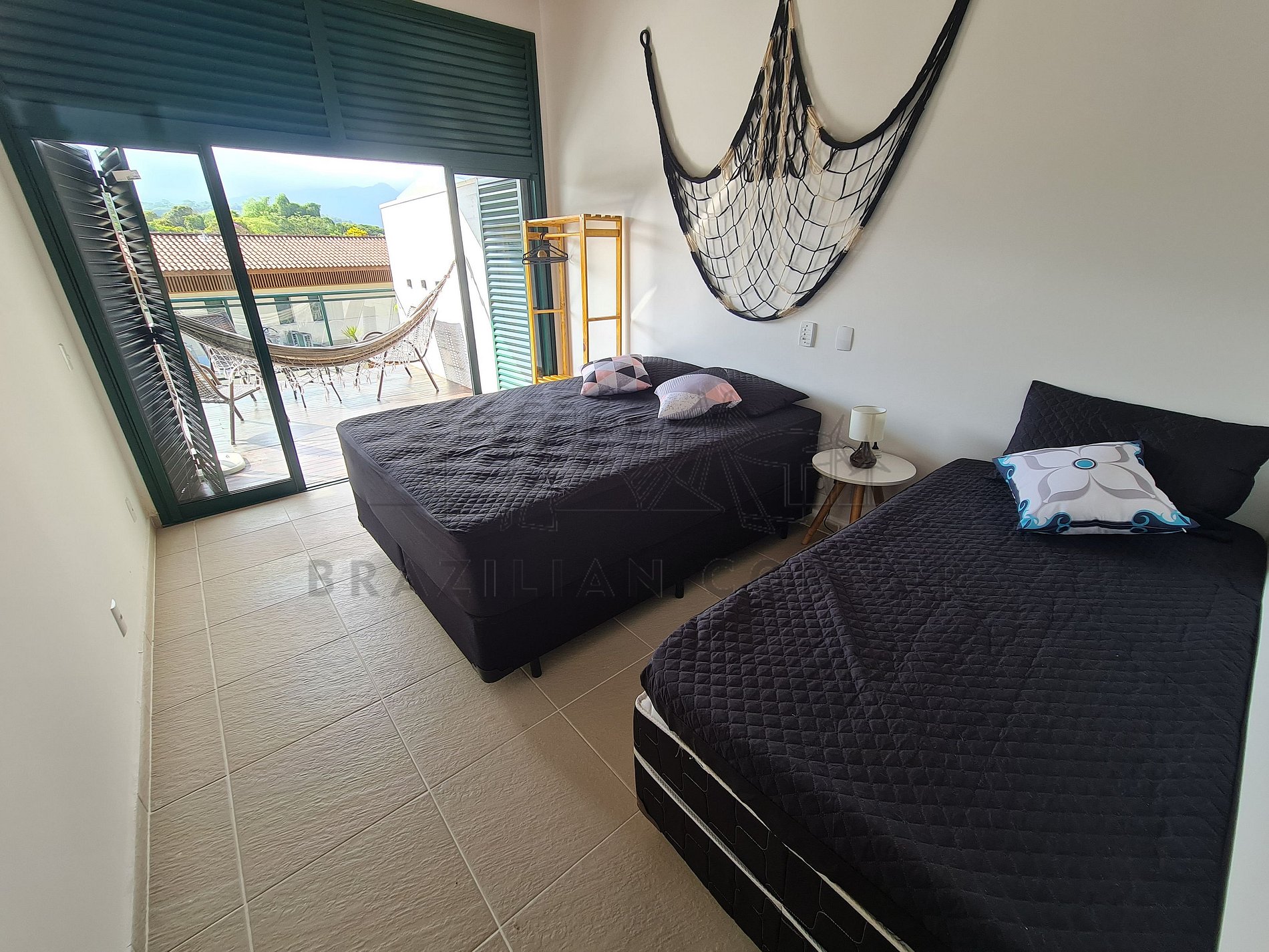 Property managed by Brazilian Corner. This spacious three-story house features 4 bedrooms, including 3 suites, and is very well equipped—ideal for a beach getaway with family or friends. Located close to Barra do Una Beach and offering an incredible view of the Atlantic Forest, the property includes 2 parking spaces, air conditioning, Smart TV, a workspace,, balcony, barbecue, hammock, and laundry facilities. The condominium offers an adult and children’s swimming pool, as well as a playground.