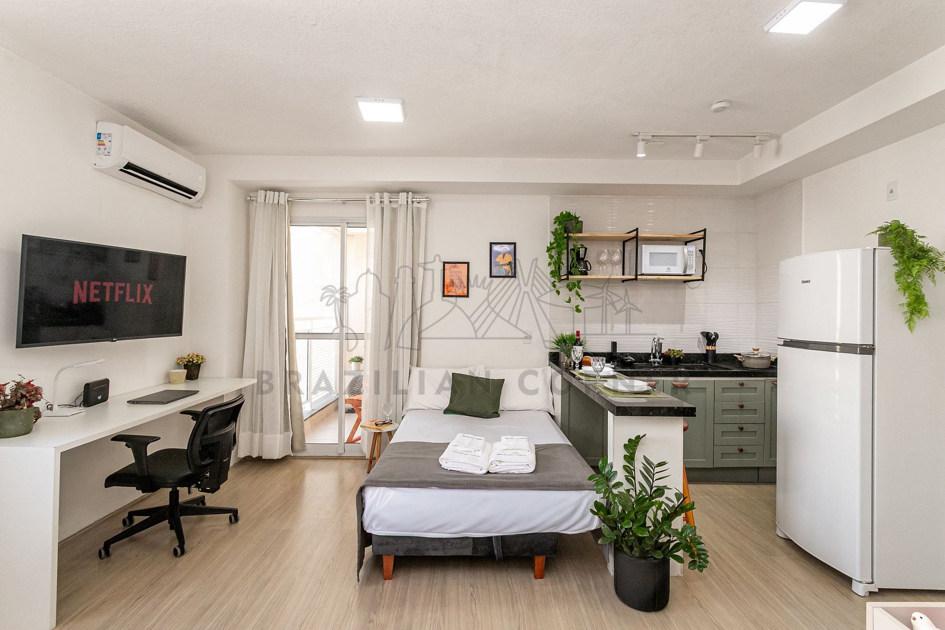 The studio was designed to be your haven of comfort and practicality. A perfect space to relax, watch your favorite shows, or simply enjoy quiet moments, while also offering a welcoming environment for rest and peaceful nights. It is equipped with: