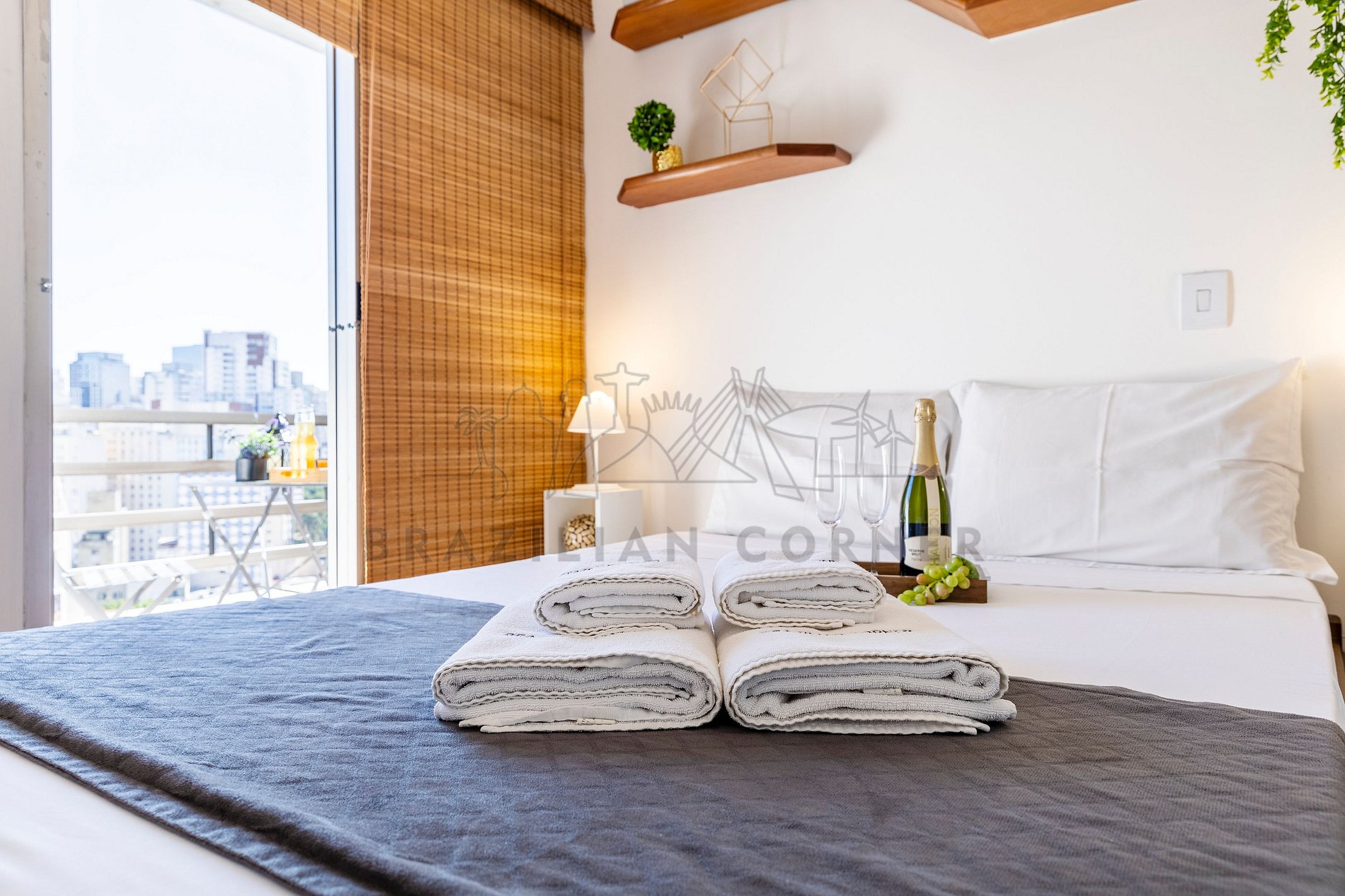 Property managed by the professional company Brazilian Corner, the cozy and complete 36m² apartment located in Bela Vista is situated in an upscale and cultural neighborhood. It offers the ideal space for a stay in the city of São Paulo, as it features two 43" Smart TVs, air conditioning, ultra-fast internet, blackout curtains, a fully equipped kitchen with a Nespresso machine, water filter, stove with oven, and kitchen utensils. The building provides parking, a swimming pool, and a gym.