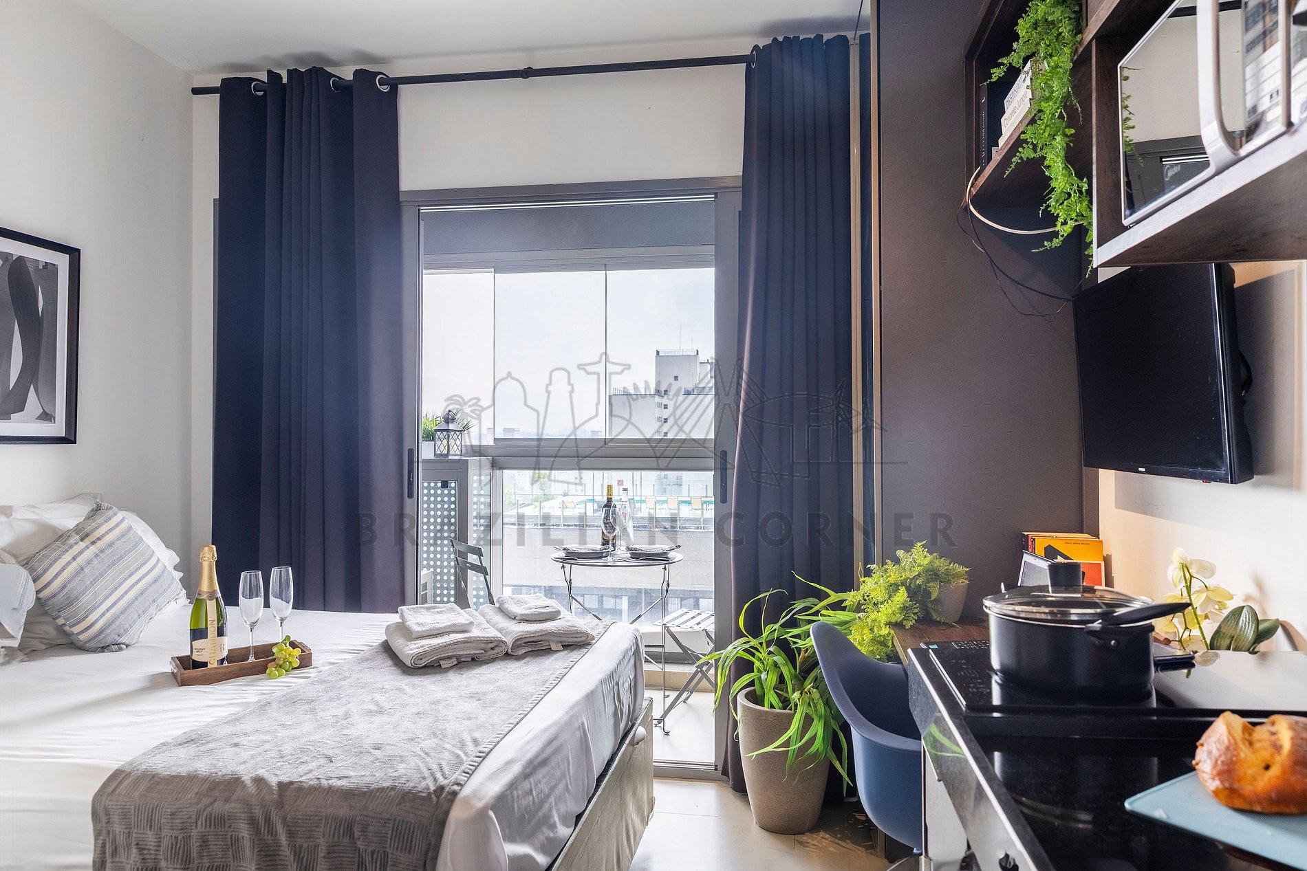 The charming studio is located in one of the most sought after areas of the city, just 50 meters from the Oscar Freire subway station and 15 minutes on foot from Avenida Paulista. The space has a SmartTV, a well-equipped kitchenette, a workspace, ultra-fast internet, air conditioning and a digital safe, ideal for a comfortable stay. The region offers tourist attractions, such as the MASP, the Museum of Image and Sound and Oscar Freire Street itself, famous for its luxurious and renowned stores.