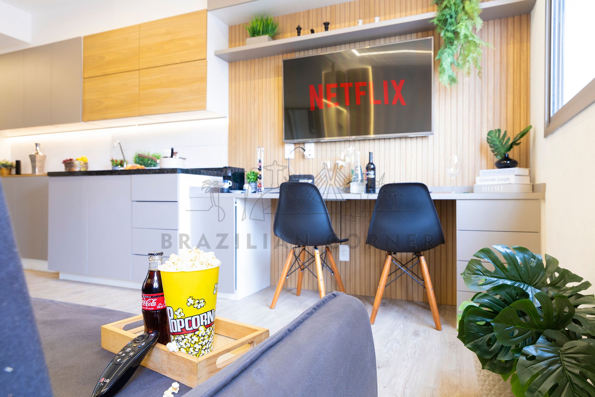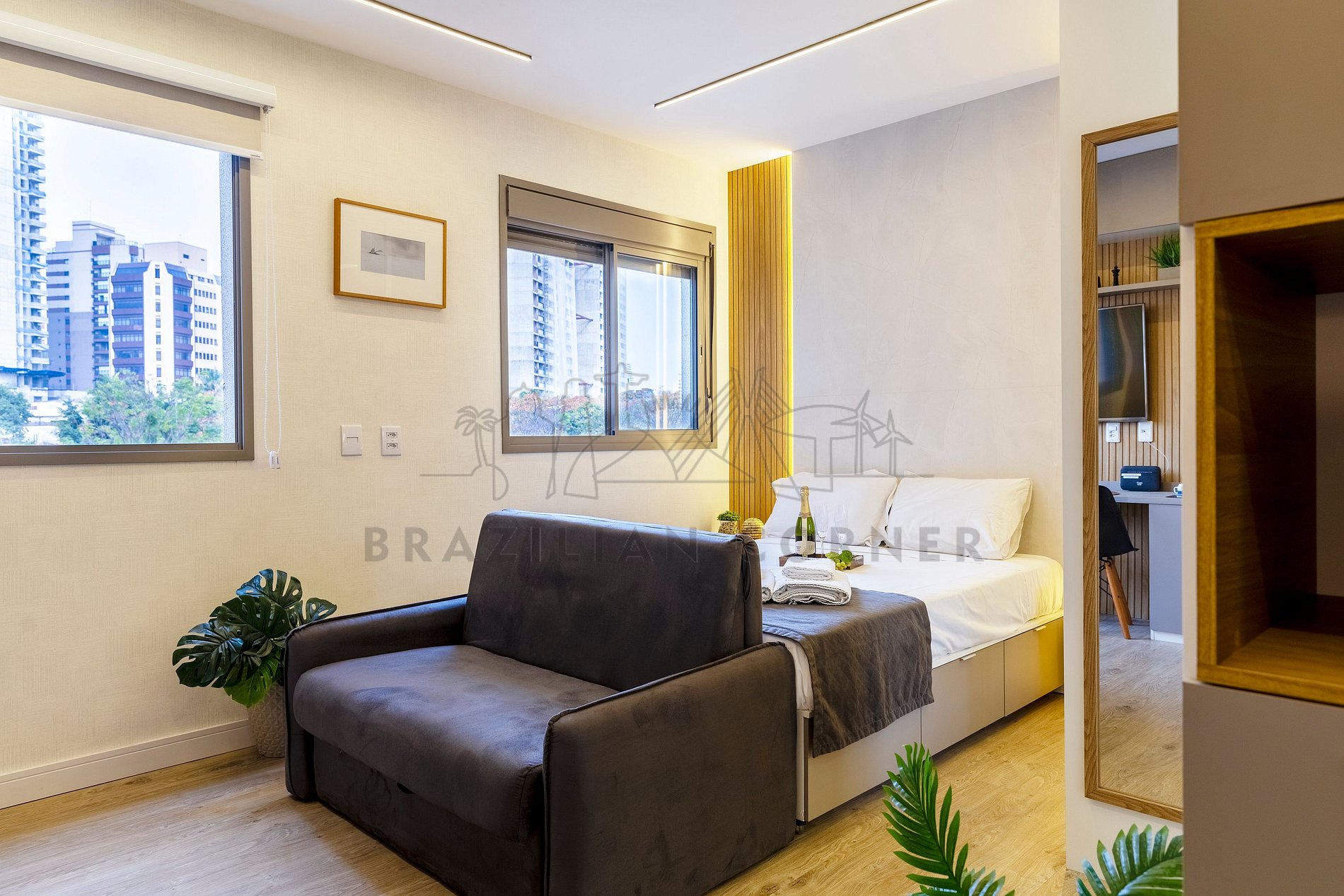 Property managed by the professional company Brazilian Corner. The cozy studio located in Pinheiros, an upscale and cool neighborhood of São Paulo, is perfect for your stay in the city of São Paulo. It is ideal for those looking for comfort and practicality in a privileged location. Super well-equipped with Smart TV, blackout, Wi-Fi, hair dryer, and full kitchen with a Nespresso. The building offers a gym, swimming pool, pet-friendly space, laundry, cinema and playroom