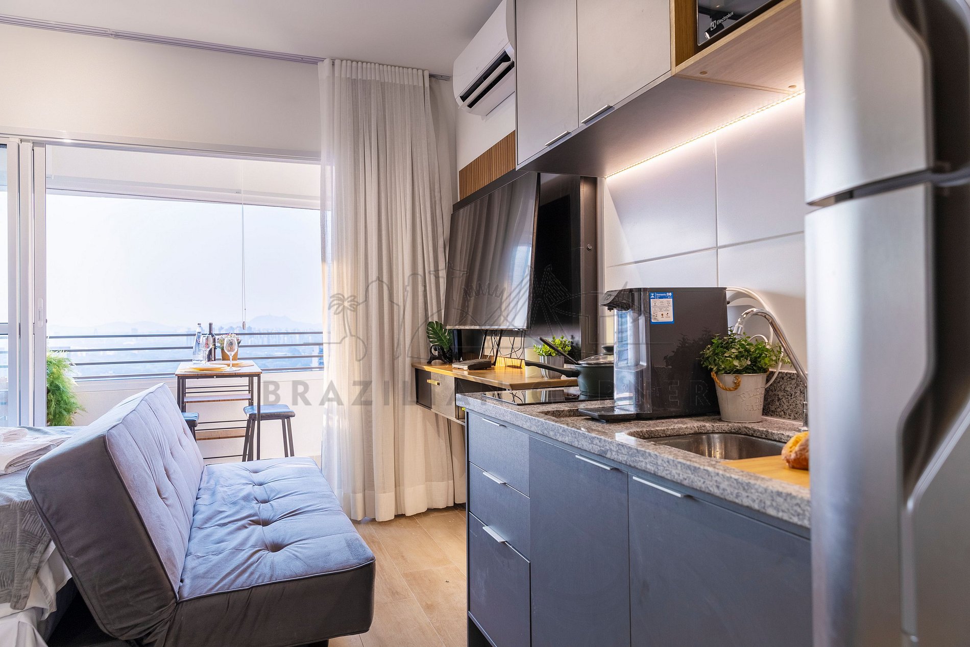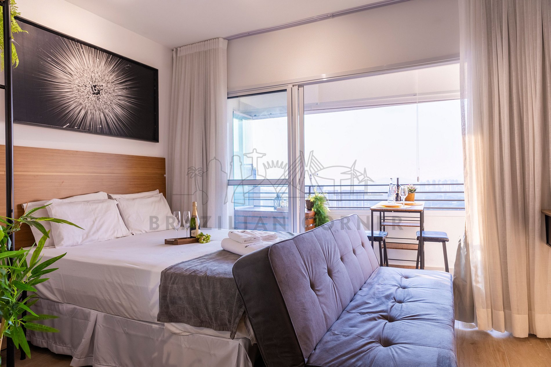 -Integrated Balcony: Enjoy relaxing moments on our balcony, equipped with chairs and a table. Delight in a stunning view of São Paulo while having a morning coffee, reading a book, or simply appreciating the scenery around you.