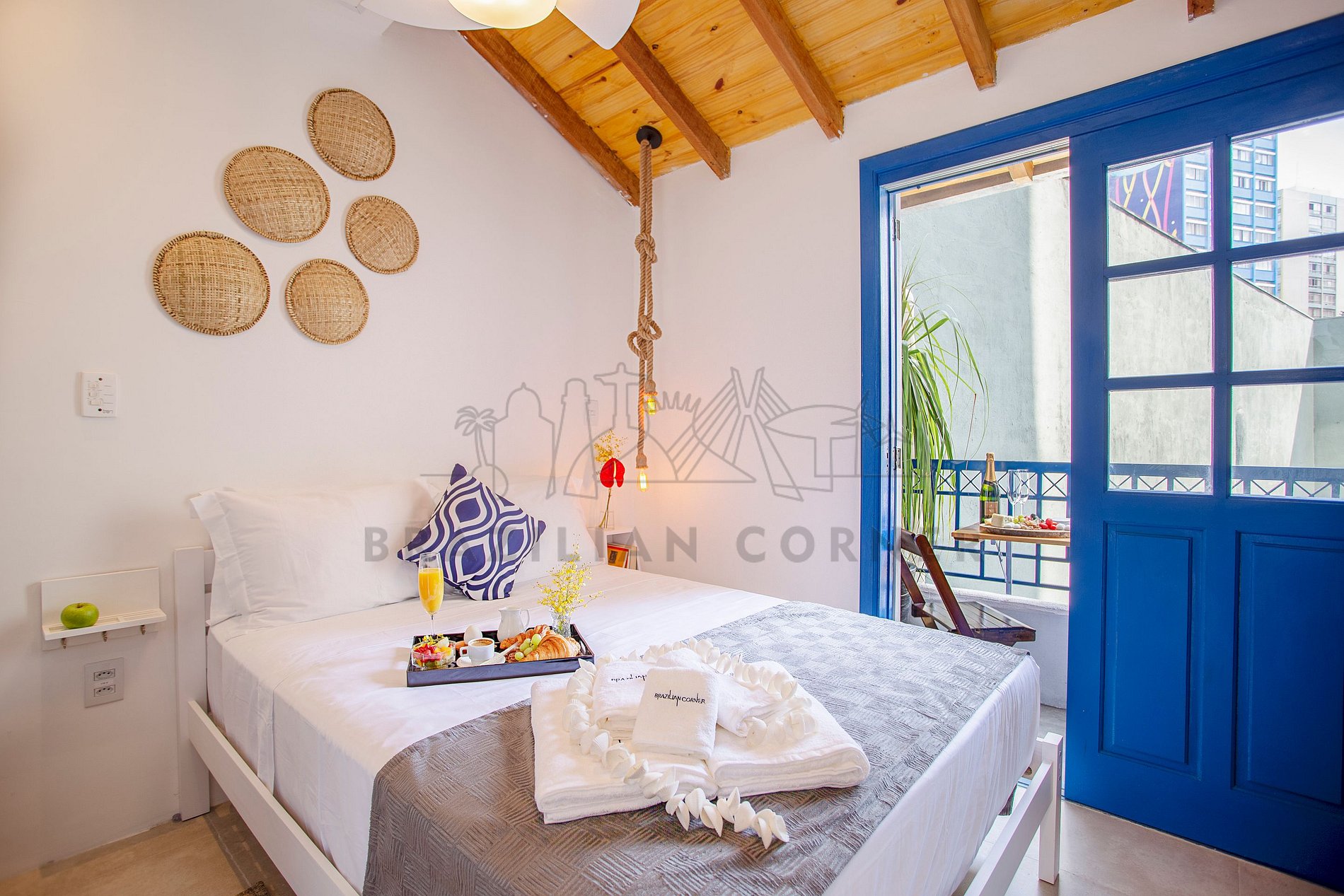With Greek architecture, the studios are located in Higienópolis, an upscale neighborhood in São Paulo, close to Higienópolis subway station (Line 4 - Yellow), and near great local bars and restaurants. Featuring a beautiful garden and a pleasant solarium, the Mediterranean atmosphere of the building is a true oasis in the region, offering a unique experience. The properties are equipped with Smart TV, kitchen, workspace, ultra-fast internet, double bed, and ceiling fan.