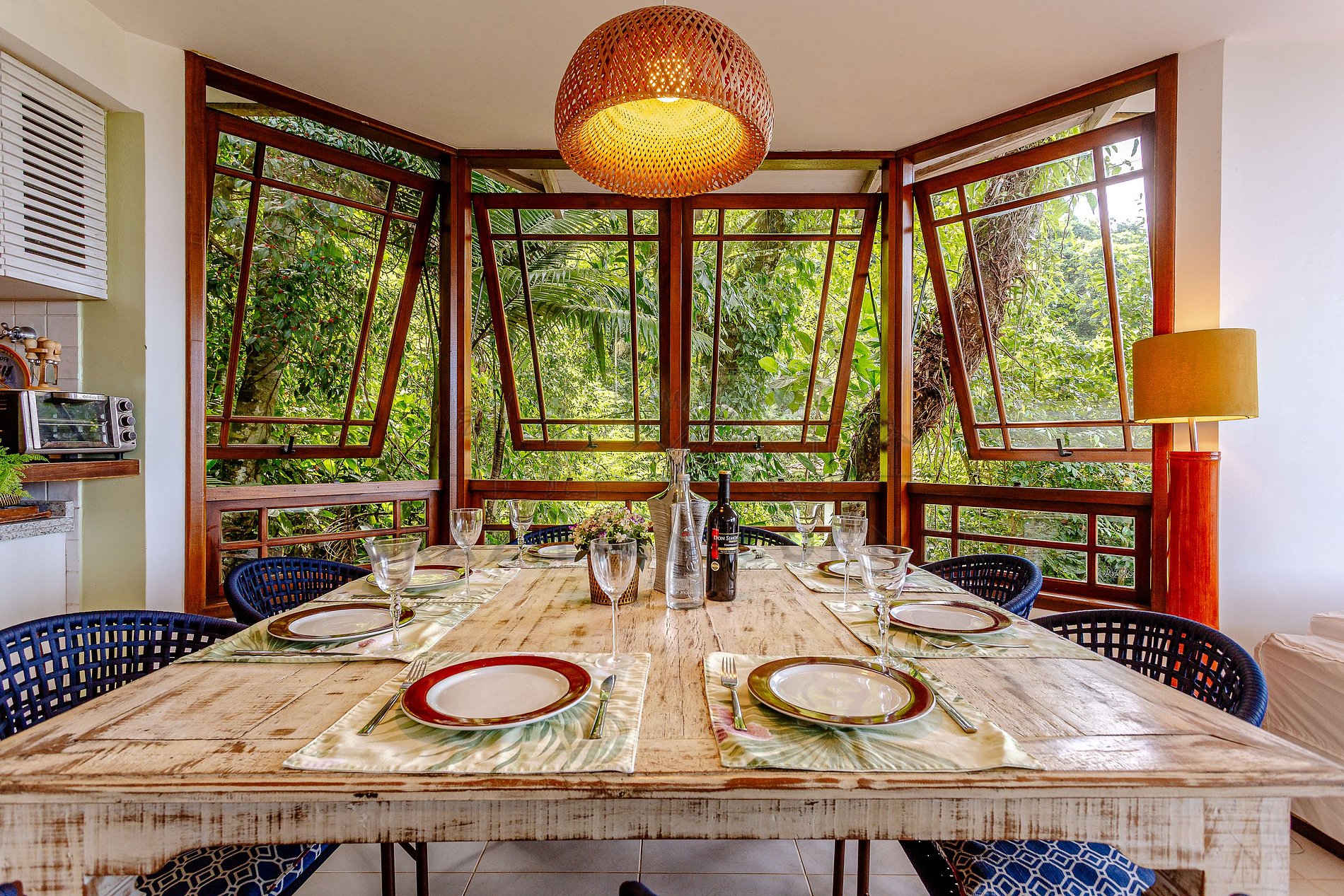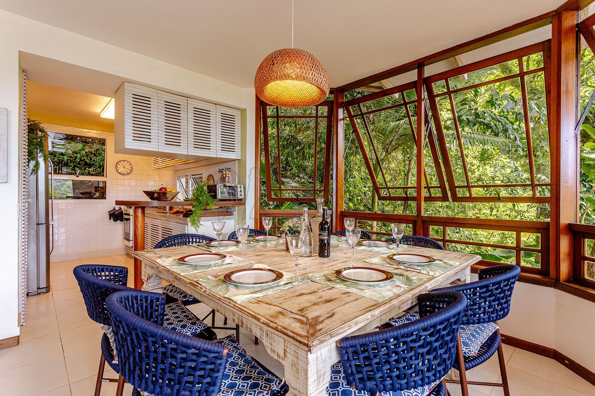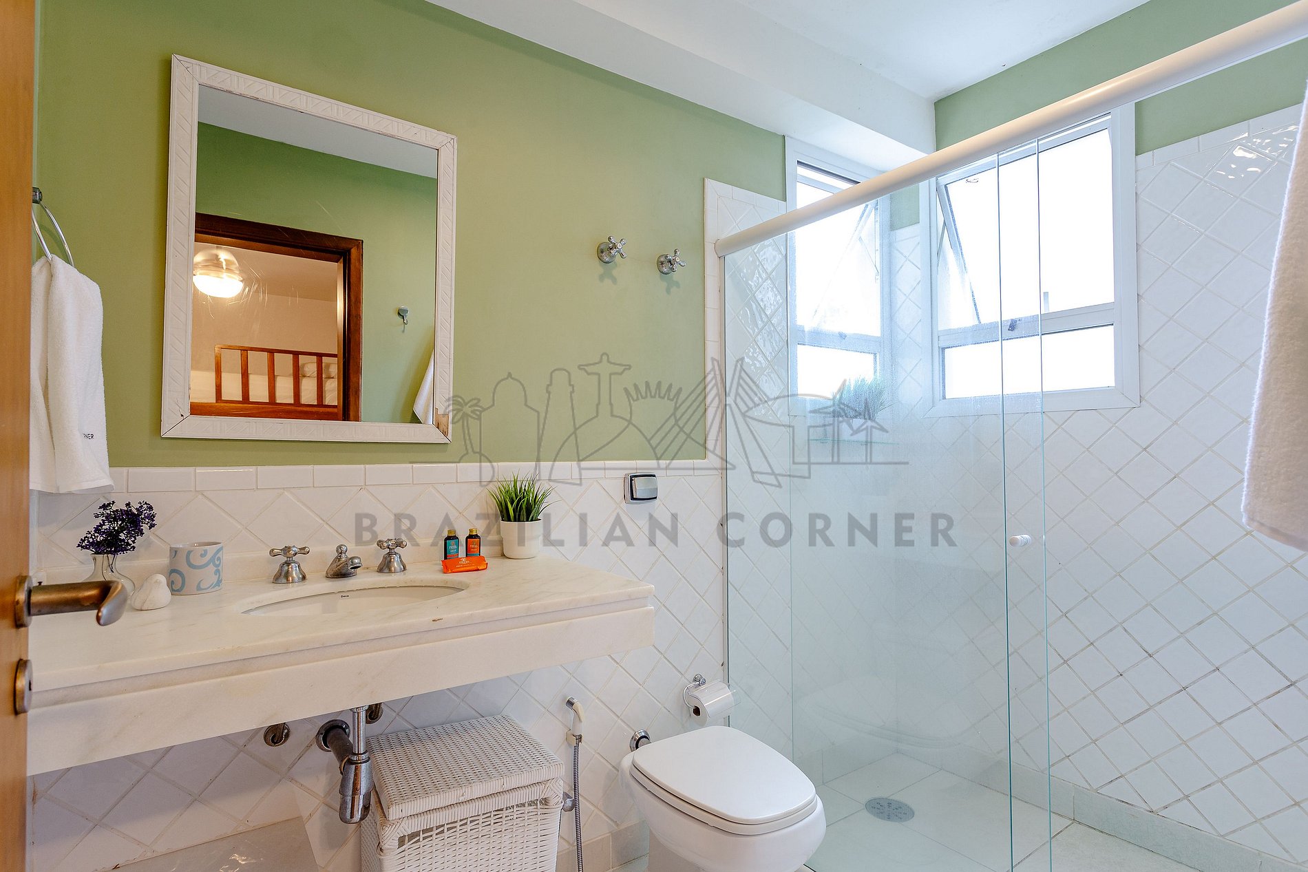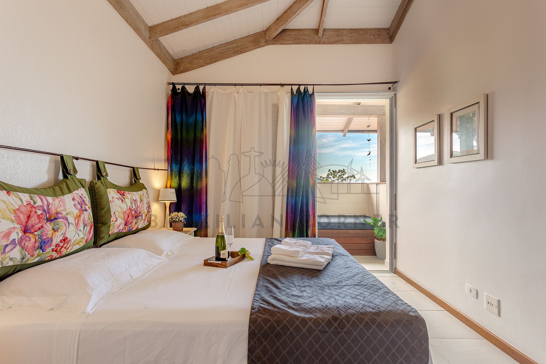 Property managed by the professional company Brazilian Corner. Safely located in a closed condominium near the beach, this charming house is perfect for relaxing close to the Atlantic Forest. It offers an incredible view, a balcony with a barbecue, a private Jacuzzi, four suites with air conditioning, a fully equipped kitchen, a laundry, fast internet, and parking for four cars. In the condominium, guests can enjoy the pool and beach service for setting up umbrella and chairs.