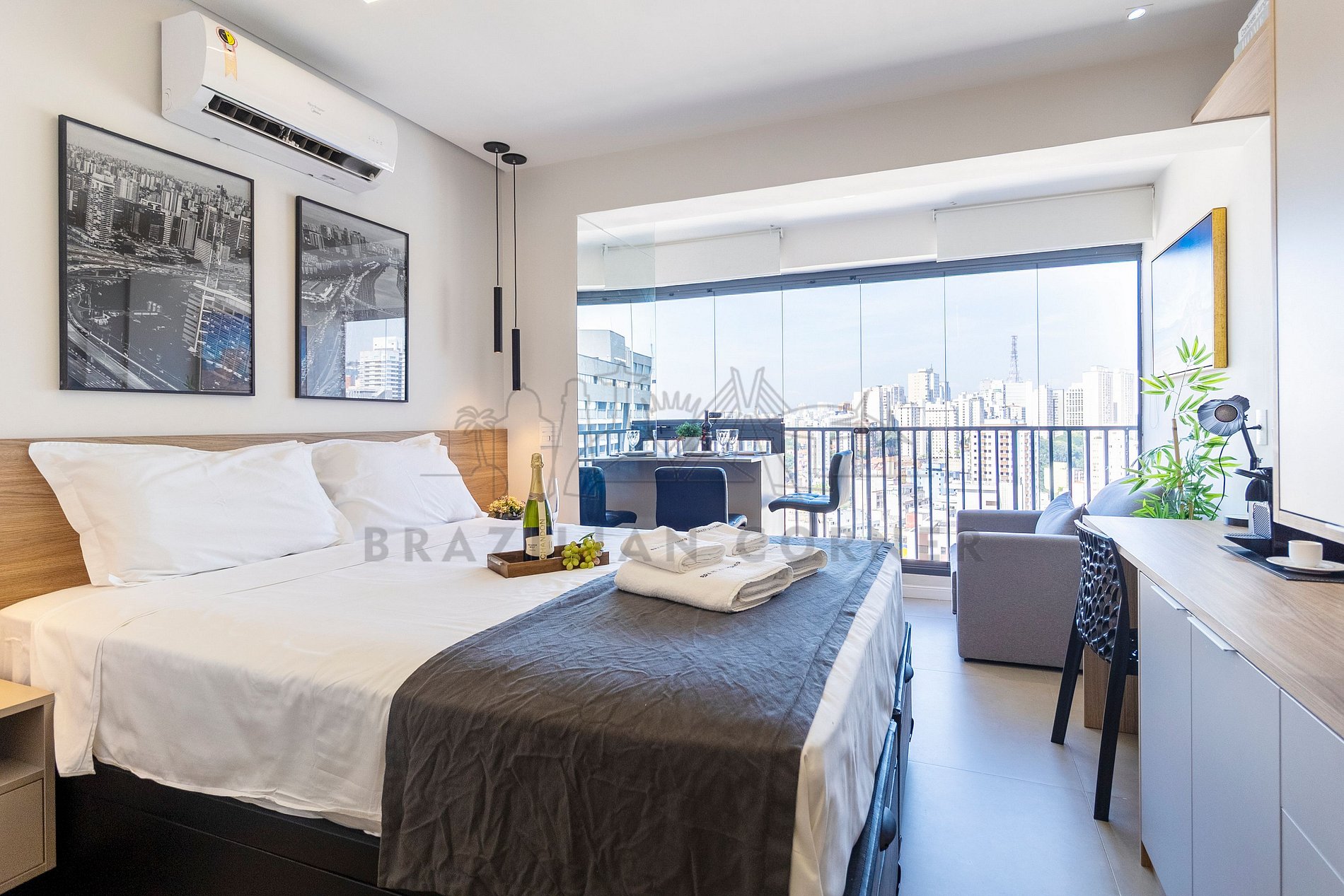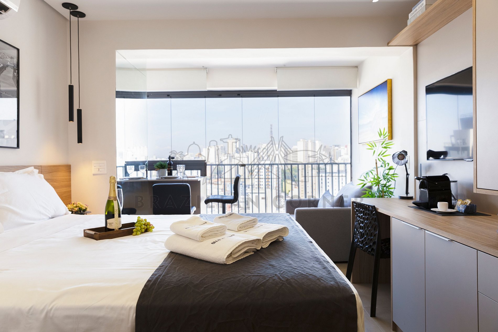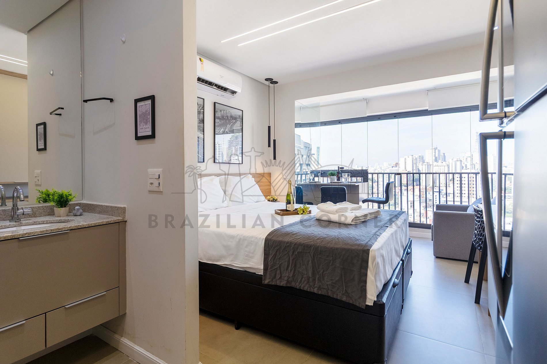 Property managed by the professional company Brazilian Corner. Located in the Bela Vista neighborhood, our apartments offer the perfect experience for those seeking convenience, comfort, and leisure in one place, making it ideal for a stay in São Paulo. Just minutes away from attractions like Ibirapuera Park and Paulista Avenue, you'll be at the center of everything São Paulo has to offer. The apartments are modern and fully equipped to ensure a comfortable stay, including Smart TV, air conditioning, digital lock, ultra-fast internet, and a complete kitchen with all the necessary utensils. Additionally, the building features a pool, gym, laundry, coworking space, pet area, sauna, convenience store, playground, toy library, and massage room.