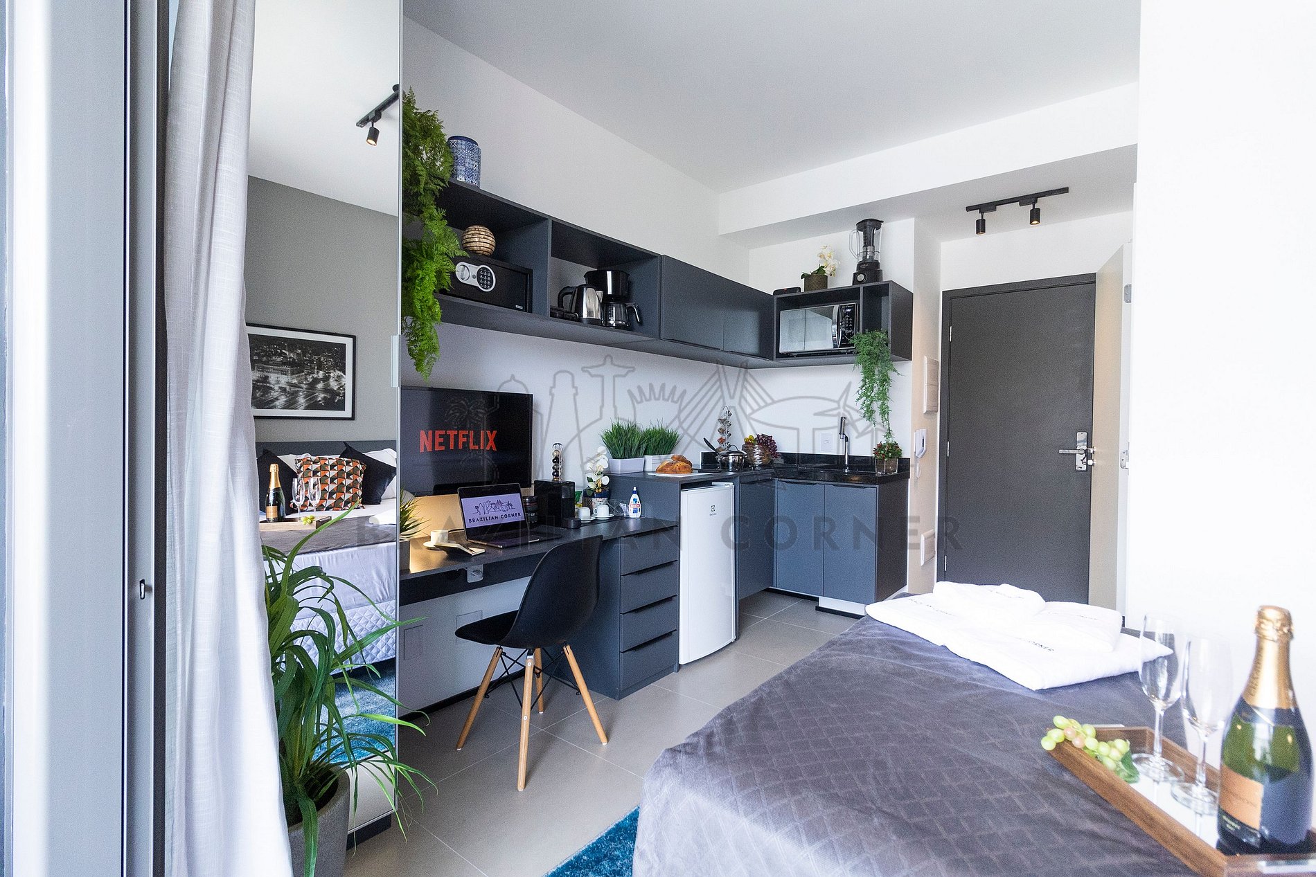 The property is managed by Brazilian Corner, a national company that offers its clients, whether traveling for leisure or business, the experience of renting unique properties for a season. The residences are designed to provide utmost comfort. Our office is located in the Vila Madalena neighborhood in São Paulo. Since 2018, Brazilian Corner has been a pioneer in its field, as it not only provides well-structured properties but also takes responsibility for all the logistics and basic supplies that make up each of its residences, making them incredibly functional. Our key differentiator is the strong communication and dedication with which we operate to address any issues that may arise before, during, and/or after our clients' stay.Our team members are trained and equipped with the necessary tools to deliver an excellent level of service. The apartments and houses are cleaned by our specialized teams, our bed linen and bath towels are laundered and sanitized in professional laundries. We maintain professionalism in everything we do to ensure our client's peace of mind and confidence.