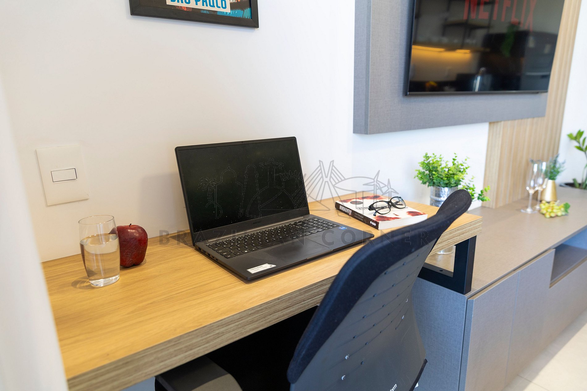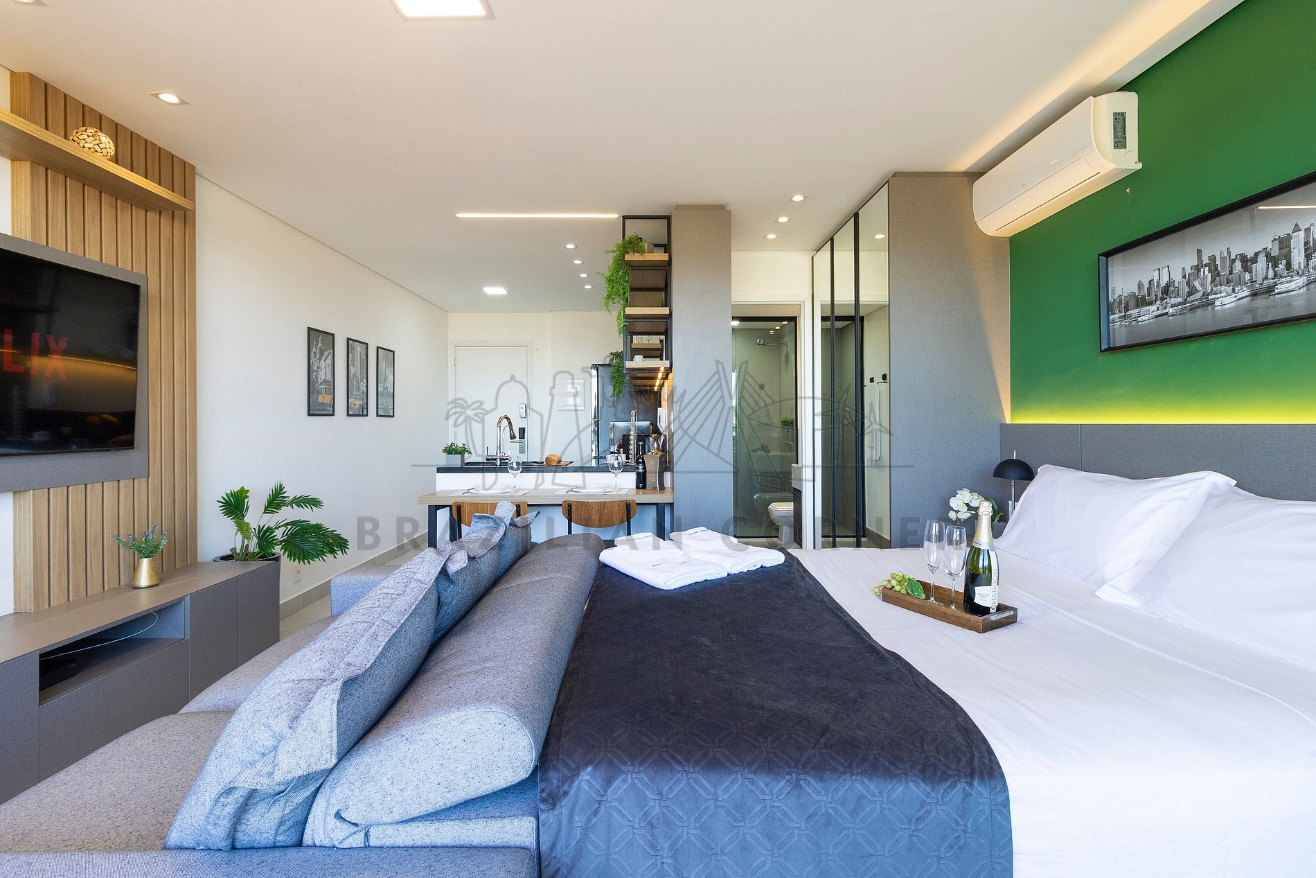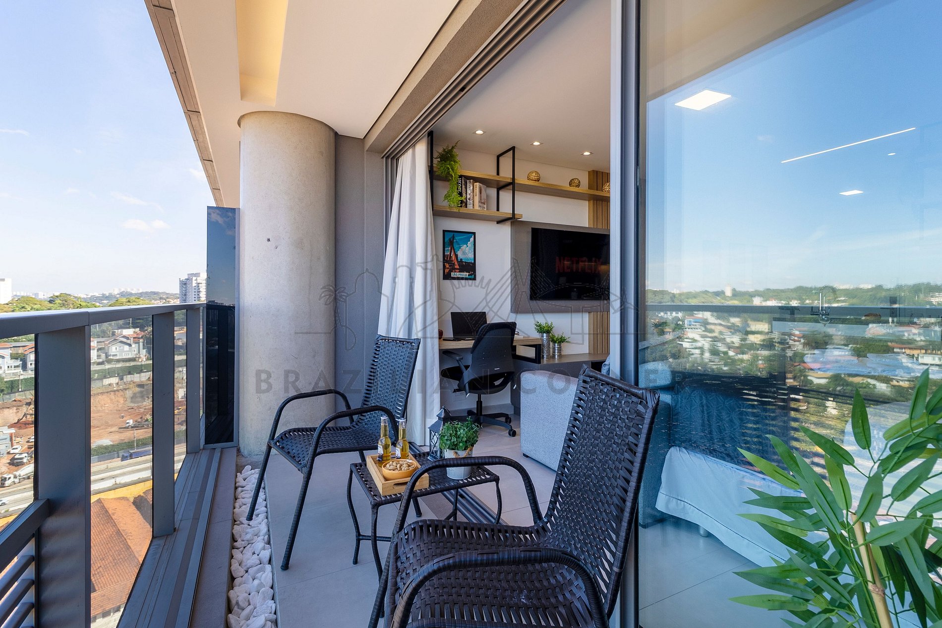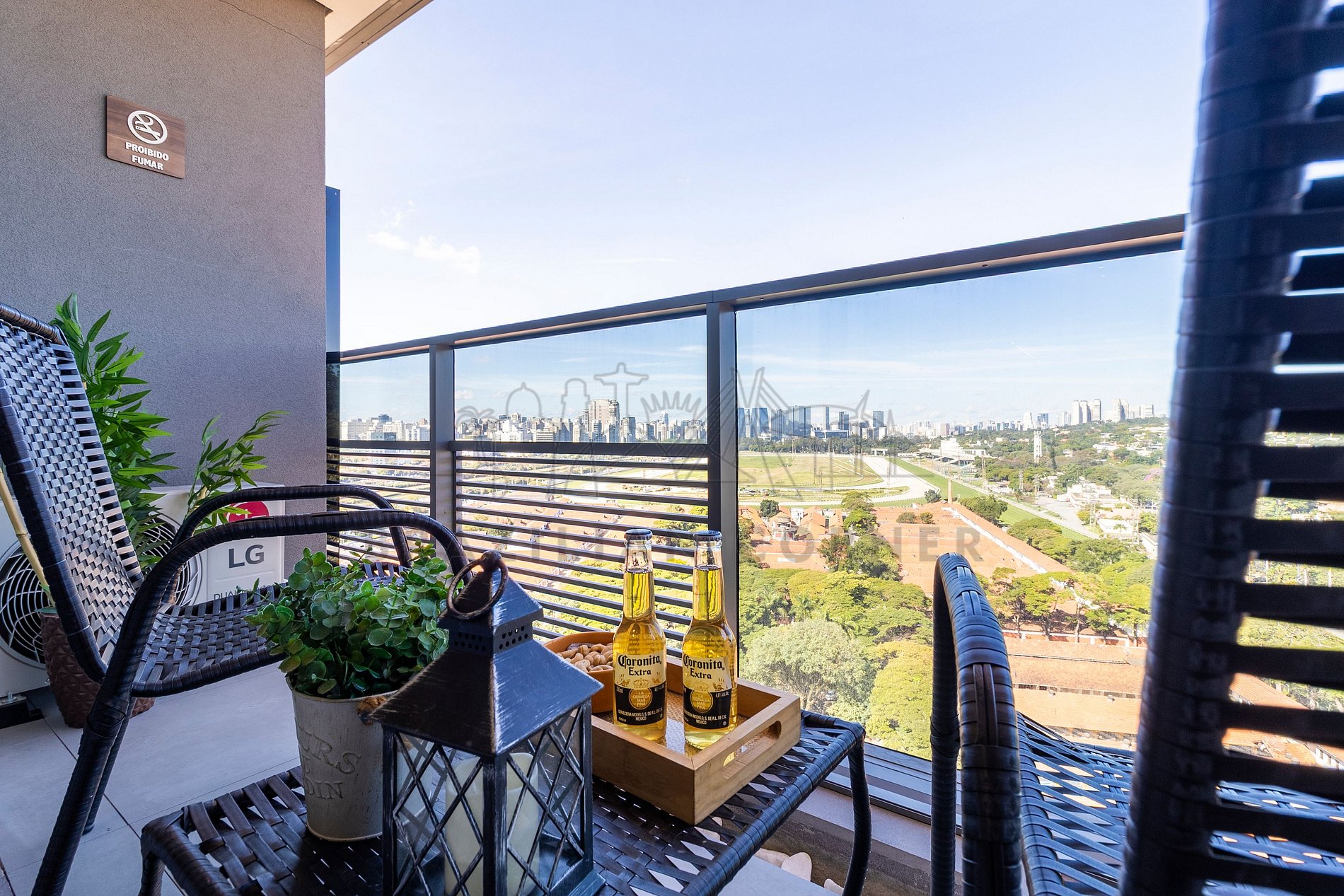 Located in front of the Jockey Club, just 800m from Butantã station (Line 4 - Yellow), the 30 m² studio overlooking the city has the ideal space for a season in São Paulo. It is well equipped with a queen size bed, sofa bed, 50" Smart TV, desk, ultra-fast internet, digital lock, air conditioning, blackout curtain, the bathroom has a gas shower, hair dryer and hygienic shower. In the building there is a parking space, gym, laundry and swimming pool.
