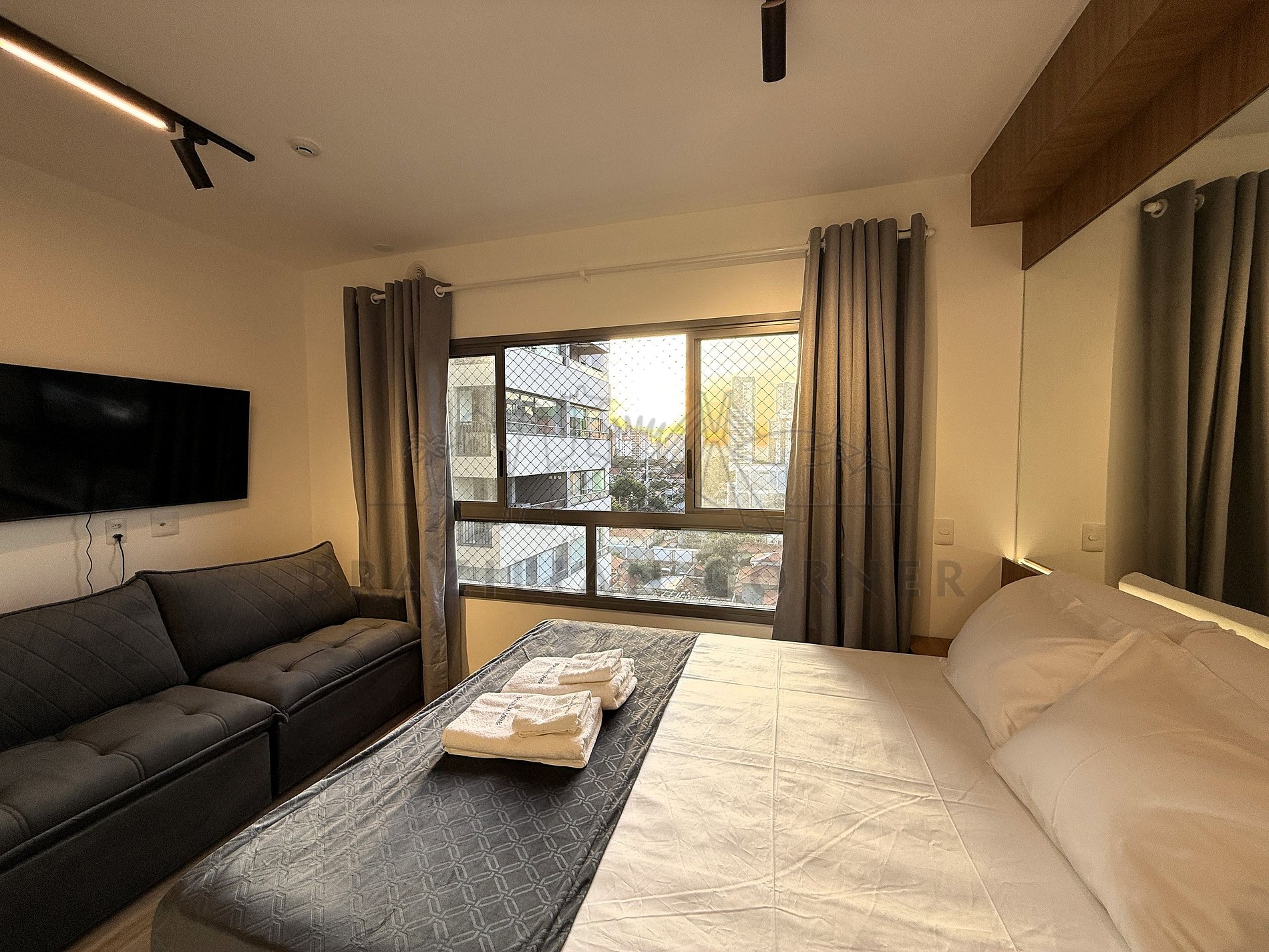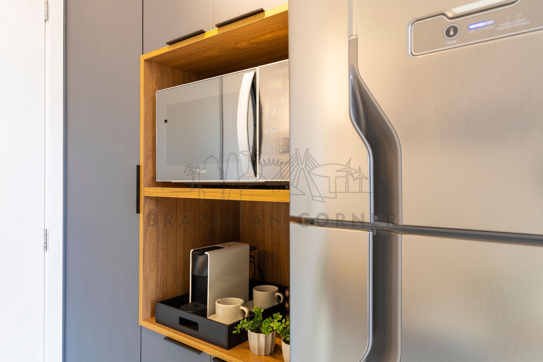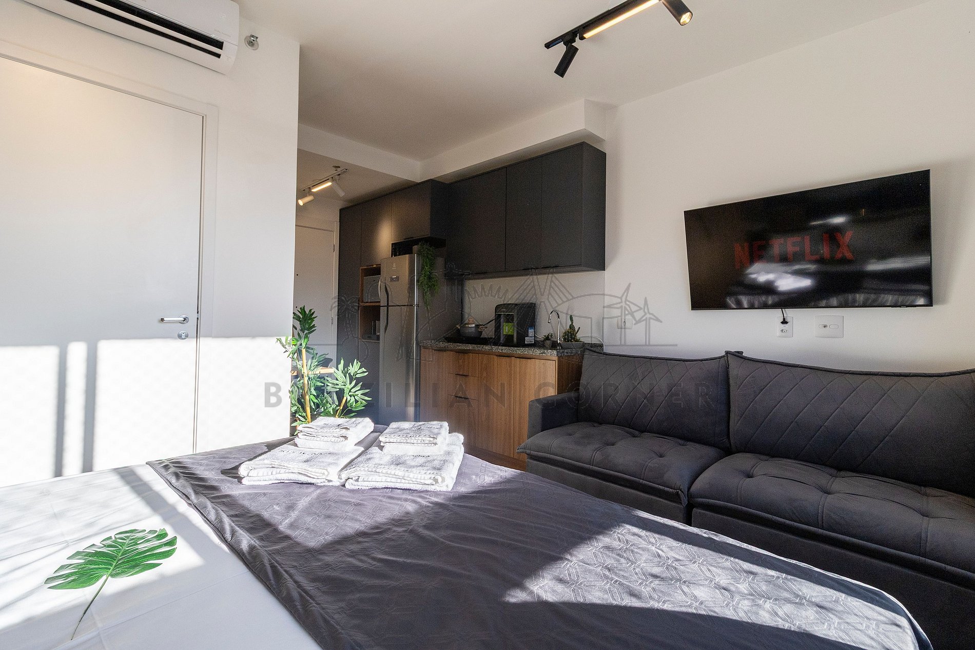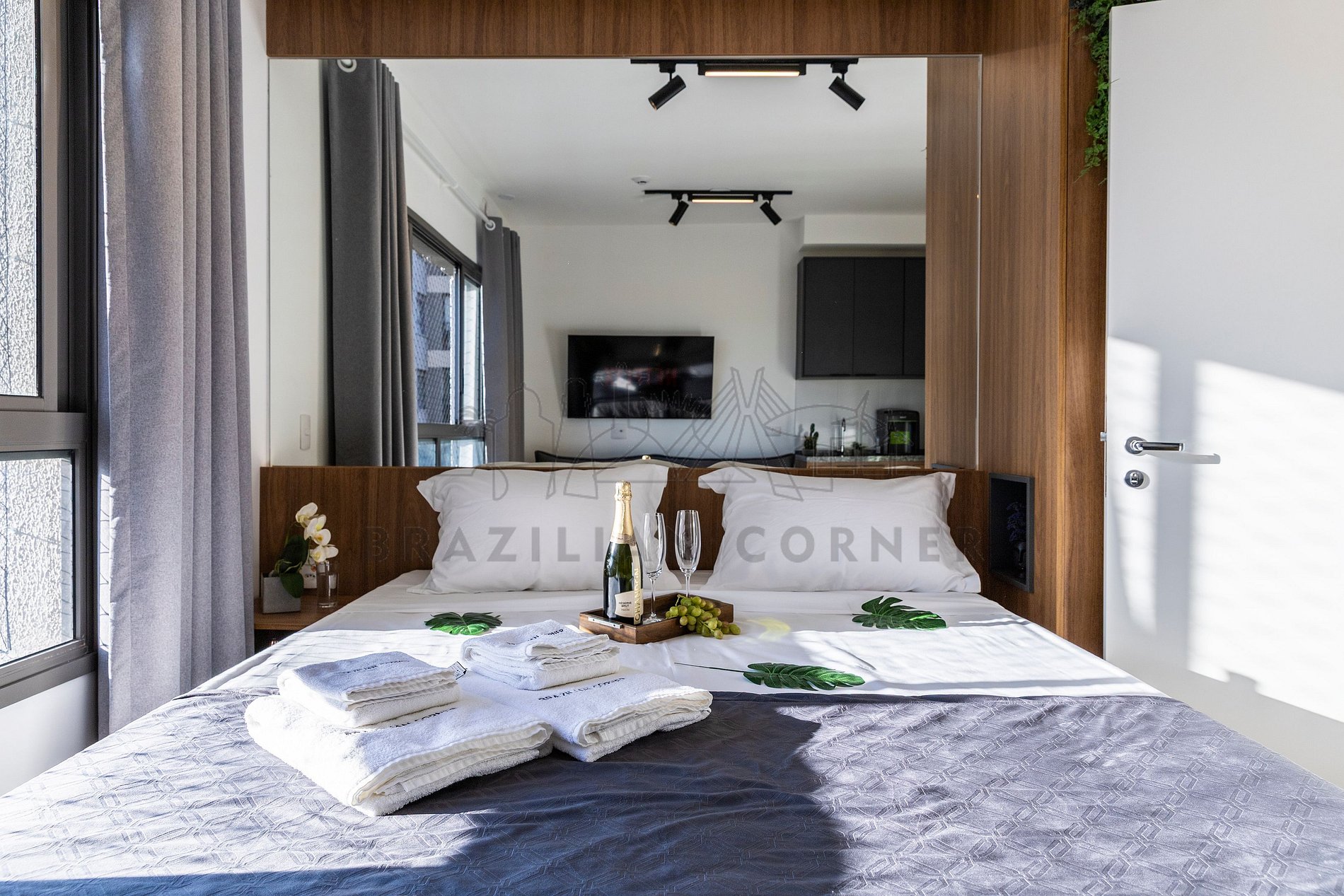 Property managed by the professional company Brazilian Corner. Just minutes from Congonhas Airport and Campo Belo metro station, this studio is ideal for couples who value comfort, a strategic location, and convenience. Located on a quiet, tree-lined street near major avenues, it features a queen bed, fully equipped kitchen, Nespresso machine, air conditioning, ultra-fast internet, 43" TV, blackout curtains, and a bidet shower. The building offers a gym and laundry facilities for guests' use.