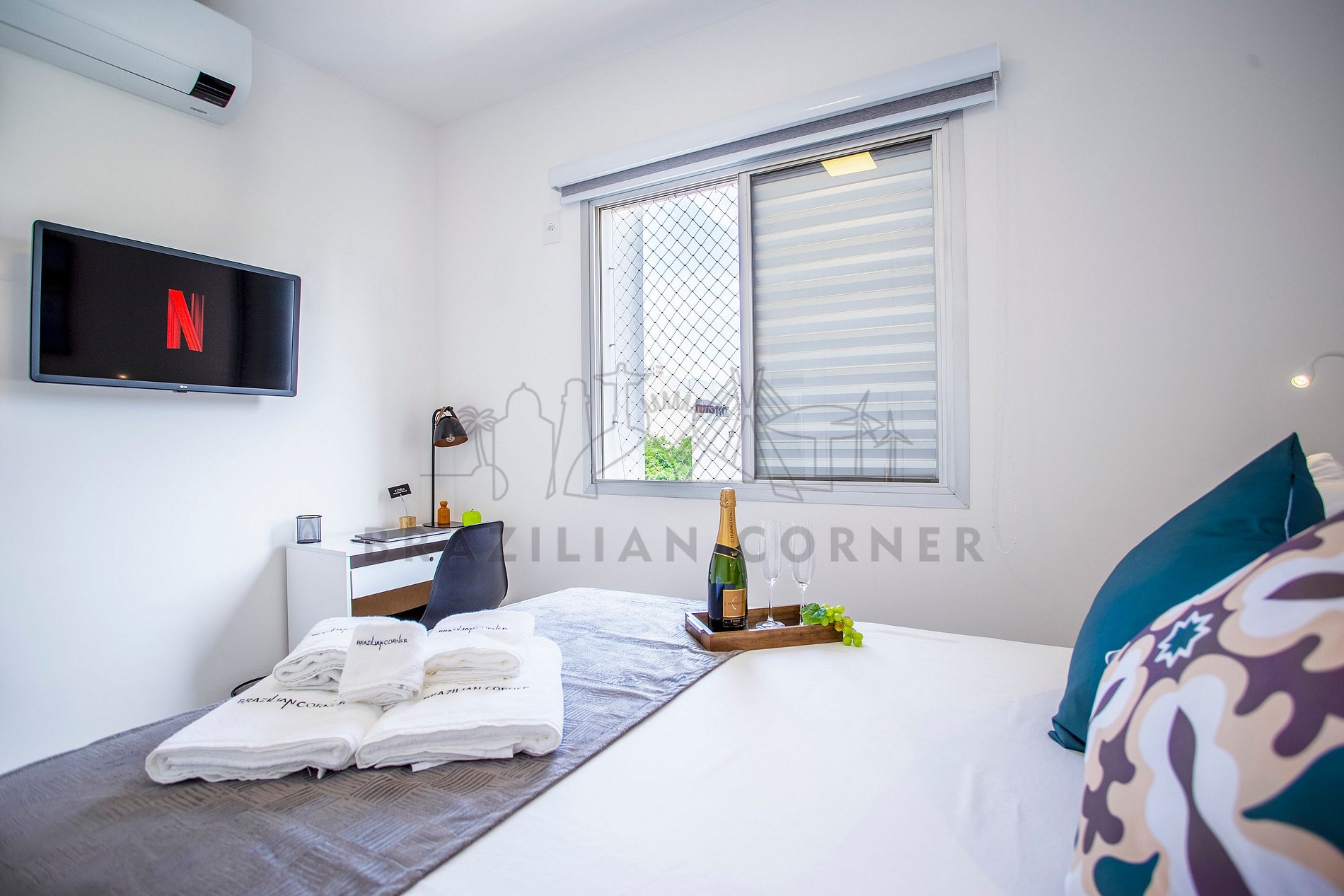 Property managed by the professional company Brazilian Corner, this cozy and complete 36m² apartment, located in Bela Vista, is situated in an upscale and cultural neighborhood. It provides the ideal space for a stay in the city of São Paulo, featuring two 32" and 40" Smart TVs, ceiling fan, ultra-fast internet, work desk, safety nets on windows and balcony, fully equipped kitchen, and washer/dryer. The building offers parking, pool, and gym facilities.