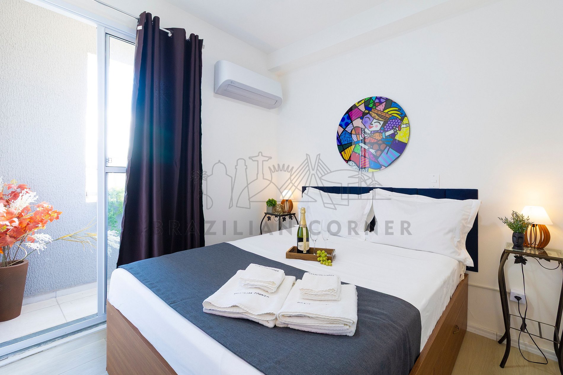 Property managed by the professional company Brazilian Corner. This 30m² apartment is just 5 minutes from the airport, ideal for a stay in São Paulo. A highlight is the home office with an ergonomic chair and Coffee Machine perfect for those who need to work. The property also features air conditioning, Smart TV, high-speed internet, a full kitchen, and blackout curtains, ensuring comfort and convenience. The condominium offers a gym, coworking space, playground, pet-friendly area.