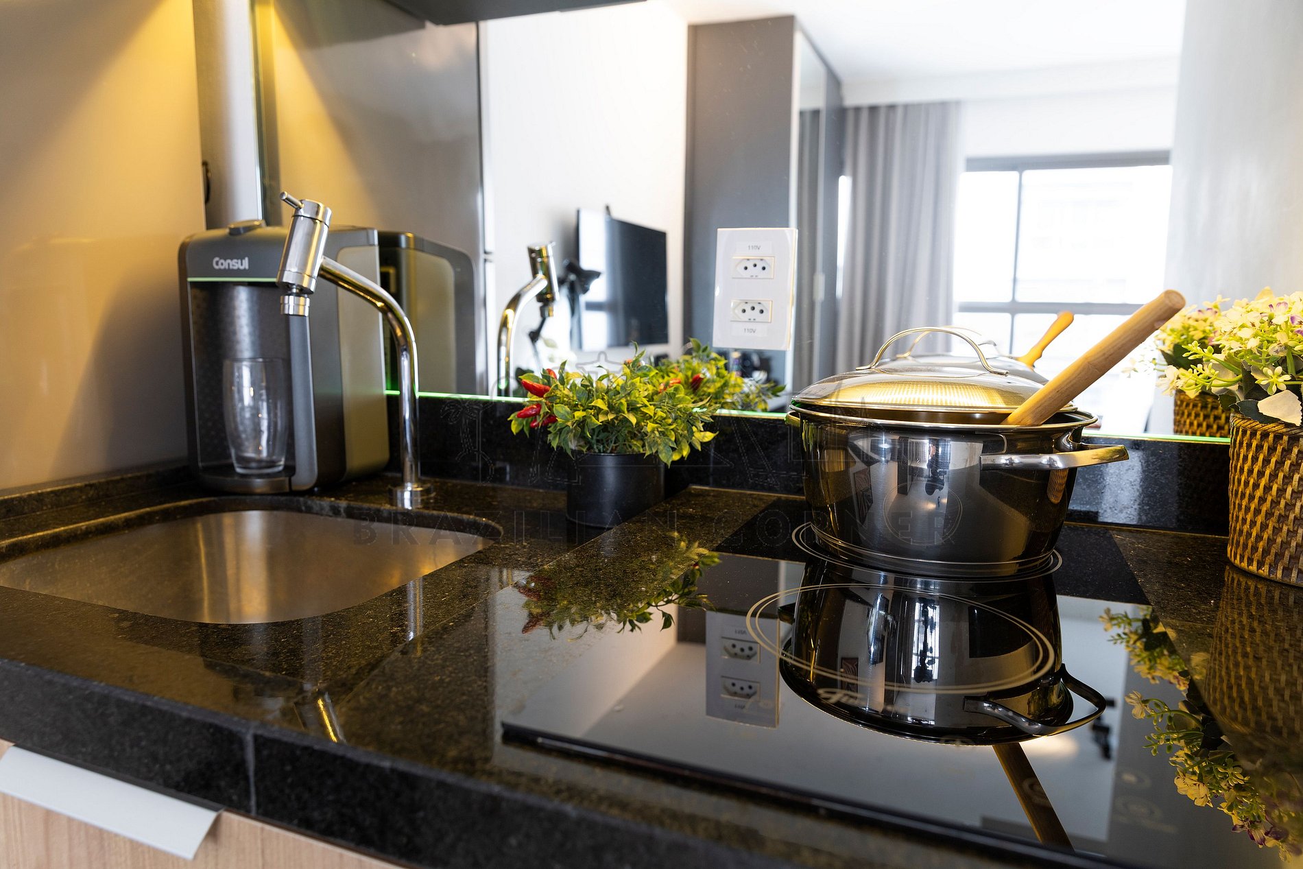 - Cook top de indução: Sinta-se em casa na nossa cozinha, completa com um moderno cook top de 2 bocas, proporcionando a flexibilidade para preparar suas refeições favoritas. Seja um mestre culinário ou alguém que gosta de experimentar novos sabores, você terá tudo o que precisa à sua disposição.