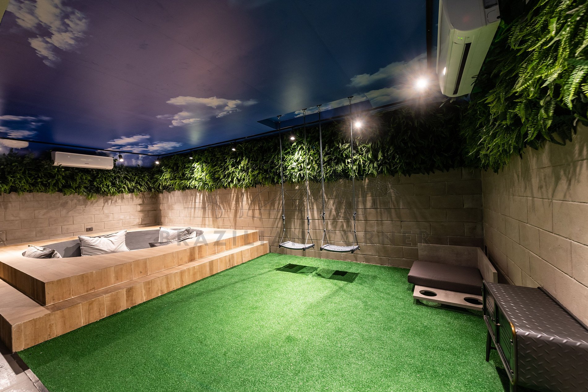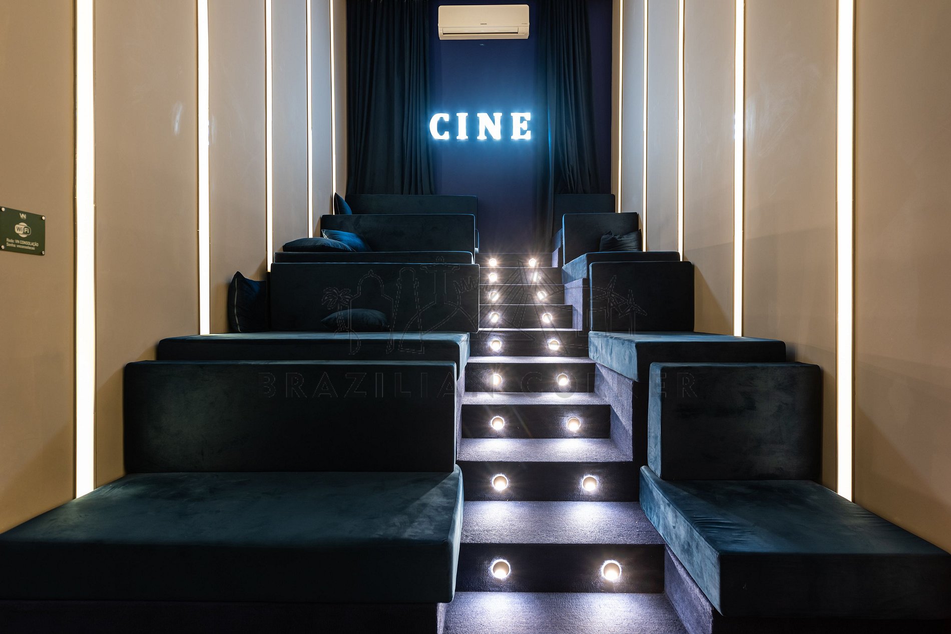 - Cinema: Com um ambiente confortável e aconchegante, é o espaço perfeito para reunir amigos, família, curtindo filmes e séries com toda a praticidade de estar dentro do próprio condomínio.