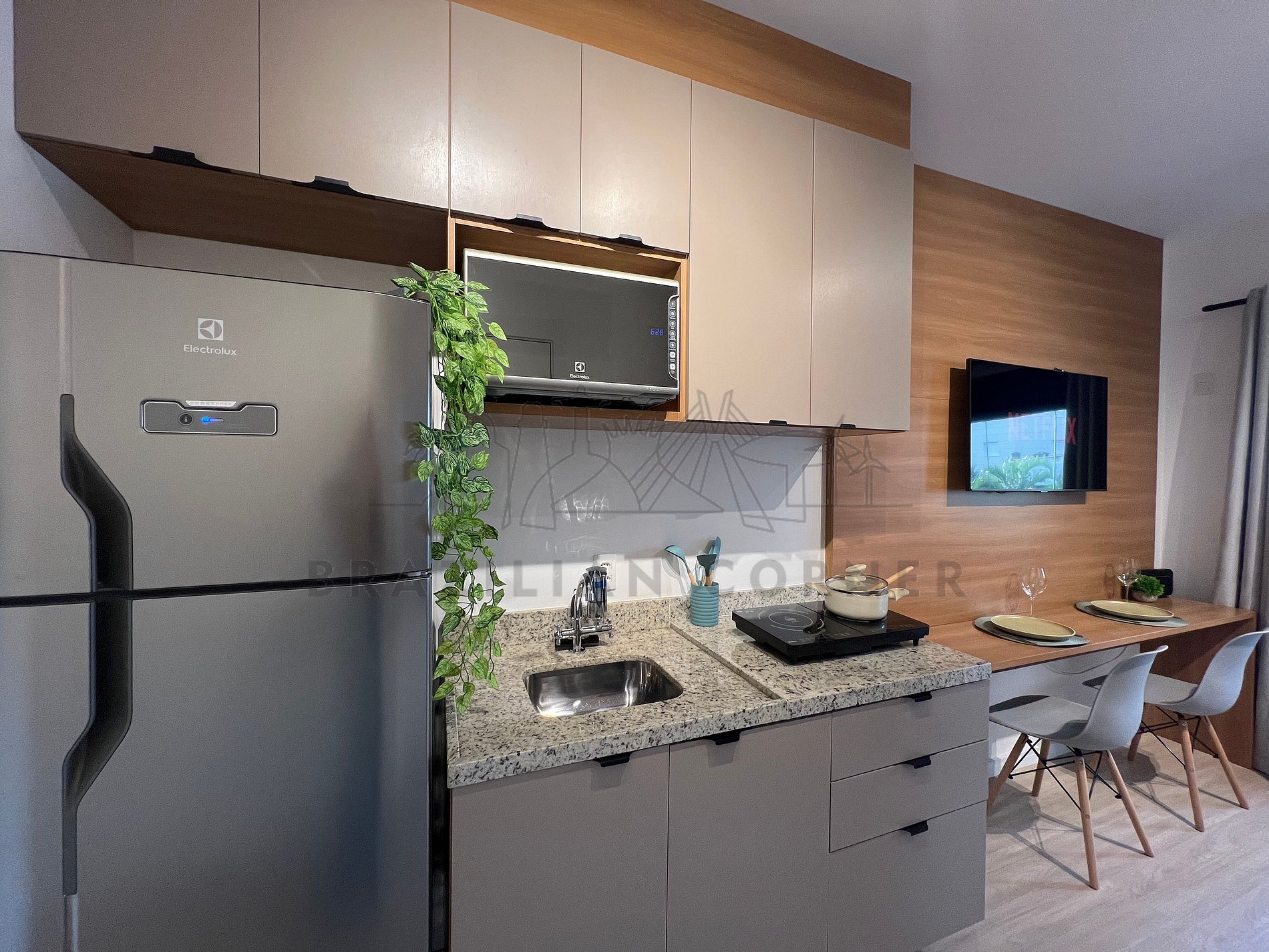 - Cooktop de indução (2 bocas)