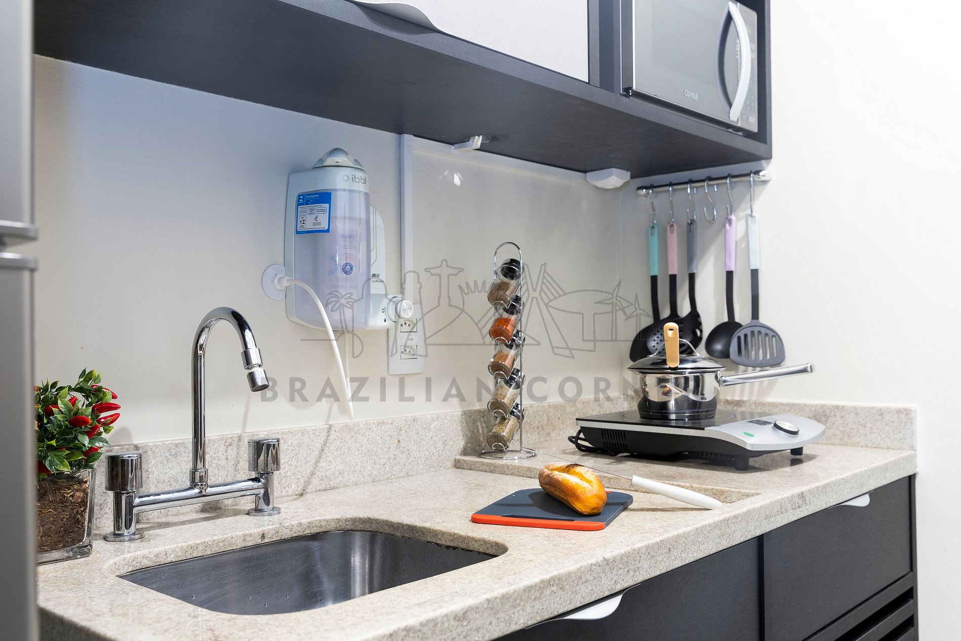 - Filtro de Água: Pensando na sua saúde e bem-estar, nossa locação por temporada possui um filtro de água, garantindo que você tenha acesso a água limpa e pura durante toda a sua estadia.