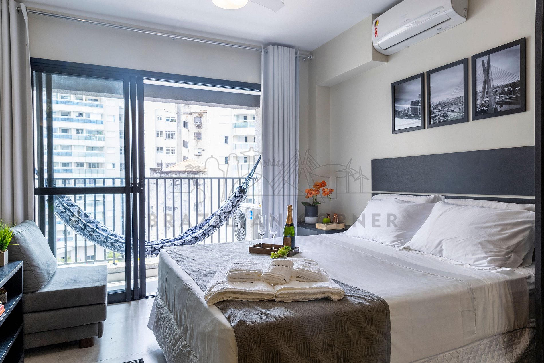 O Imóvel é administrado pela Brazilian Corner, uma empresa nacional que oferece aos seus clientes, que viajam a lazer ou negócios, a experiência de locar imóveis únicos durante uma temporada. As residências são planejadas para prover grande conforto. Nosso escritório fica no bairro Vila Madalena em São Paulo. Desde 2018, a Brazilian Corner é pioneira em seu ramo, pois além de proporcionar imóveis bem estruturados, também é responsável por toda a logística e suprimentos básicos que compõem cada uma de suas residências, o que as torna extremamente funcionais. Nosso grande diferencial é a boa comunicação e a seriedade com que atuamos para resolver qualquer entrave que possa acontecer antes, durante, e/ou após a estadia de nossos clientes. Nossos colaboradores são treinados e têm as ferramentas necessárias para proporcionar um excelente nível de serviço. Os apartamentos e casas são limpos por nossas equipes especializadas, a nossas roupas de cama e banho são lavadas e higienizadas em lavanderias profissionais. Mantemos o profissionalismo em tudo o que fazemos para, dessa forma, garantir a tranquilidade e confiança de nossos clientes.