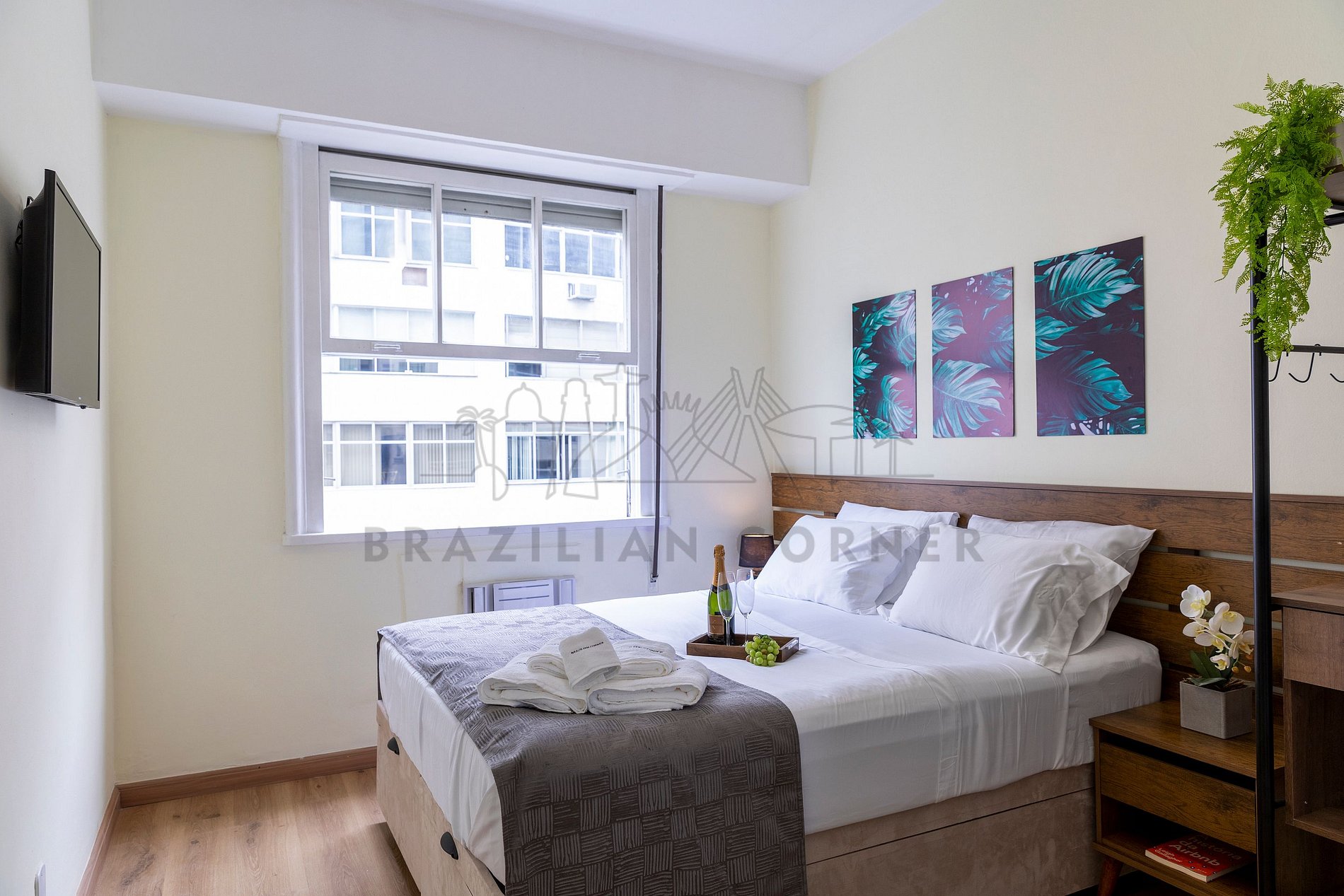 Imóvel administrado pela empresa profissional Brazilian Corner, localizado em Copacabana, estratégicamente a 100m da praia e a 400m da estação de metrô. O apartamento tem 33m² e conta com estacionamento, proporcionando o espaço ideal para uma temporada no Rio de Janeiro. Ele dispõe de Smart TV de 43", ar condicionado, internet ultra veloz, mesa de trabalho, fechadura digital, cozinha completa, banheiro com secador de cabelo, ducha higiênica e chuveiro a gás.