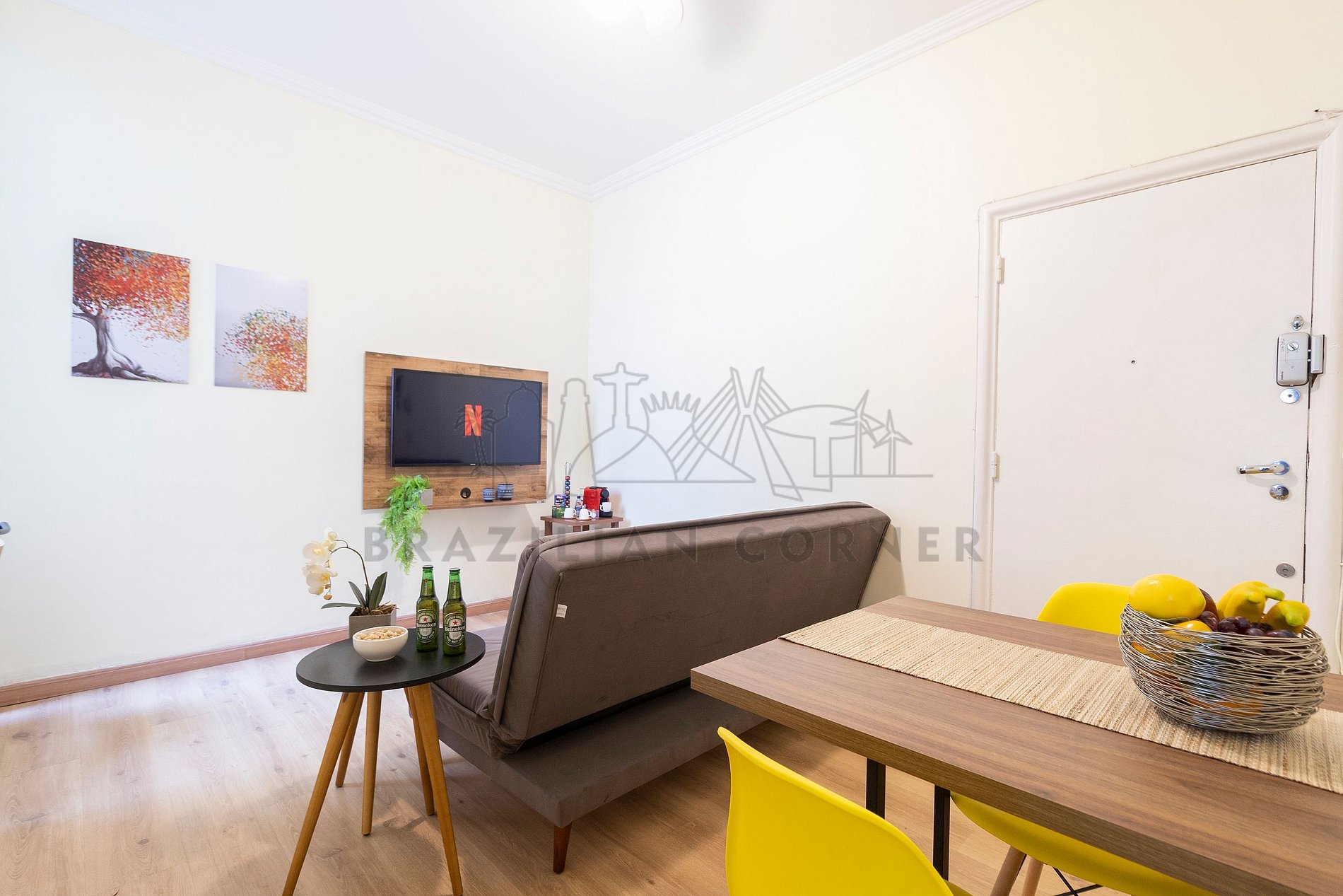 O Imóvel é administrado pela Brazilian Corner, uma empresa nacional que oferece aos seus clientes, que viajam a lazer ou negócios, a experiência de locar imóveis únicos durante uma temporada. As residências são planejadas para prover grande conforto. Nosso escritório fica no bairro Vila Madalena em São Paulo. Desde 2018, a Brazilian Corner é pioneira em seu ramo, pois além de proporcionar imóveis bem estruturados, também é responsável por toda a logística e suprimentos básicos que compõe cada uma de suas residências, o que as torna extremamente funcionais. Nosso grande diferencial é a boa comunicação e a seriedade com que atuamos para resolver qualquer entrave que possa acontecer antes, durante, e/ou após a estadia de nossos clientes. Nossos colaboradores são treinados e têm as ferramentas necessárias para proporcionar um excelente nível de serviço. Os apartamentos e casas são limpos por nossas equipes especializada, a nossa roupa de cama e banho são lavadas e higienizadas em lavanderias profissionais. Mantemos o profissionalismo em tudo o que fazemos para, dessa forma, garantir a tranquilidade e confiança de nossos clientes.