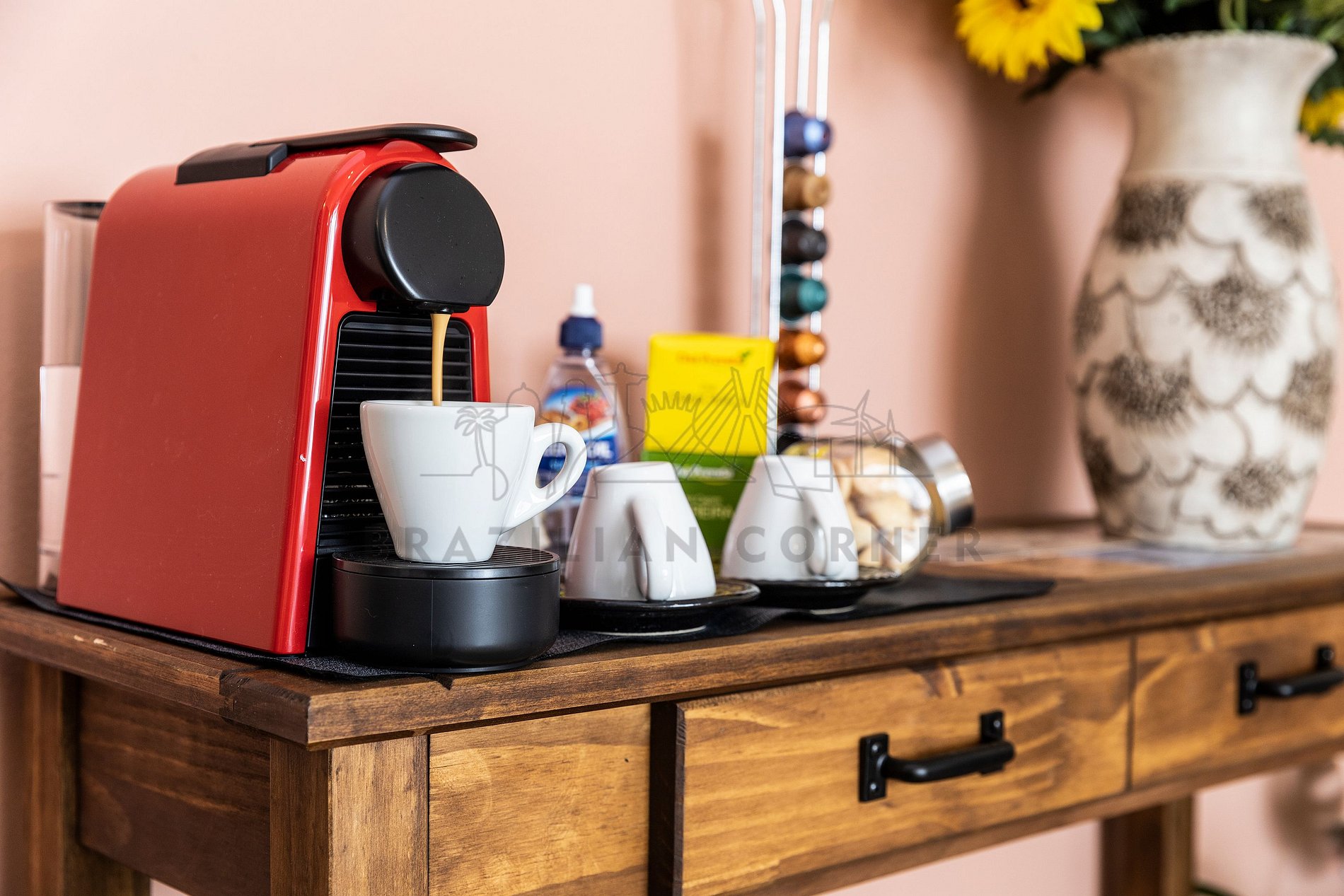 - Máquina Nespresso: Desperte seus sentidos com uma xícara de café fresco todas as manhãs. Em nossa locação, disponibilizamos uma máquina Nespresso para que você possa apreciar a sua bebida preferida. No entanto, é necessário trazer suas próprias cápsulas de café, pois não fornecemos.