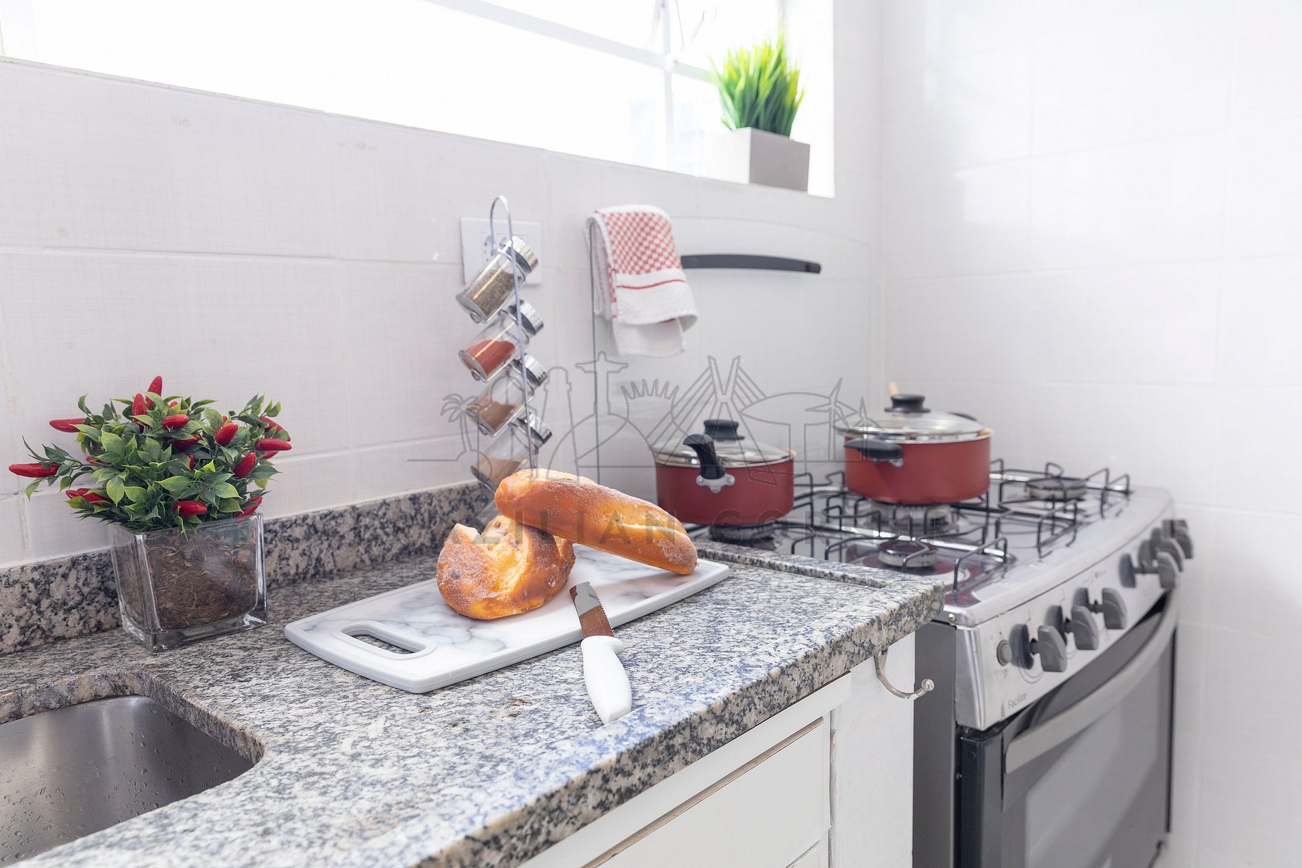 - Fogão: Sinta-se em casa na nossa cozinha, completa com um moderno fogão, proporcionando a flexibilidade para preparar suas refeições favoritas. Seja um mestre culinário ou alguém que gosta de experimentar novos sabores, você terá tudo o que precisa à sua disposição.