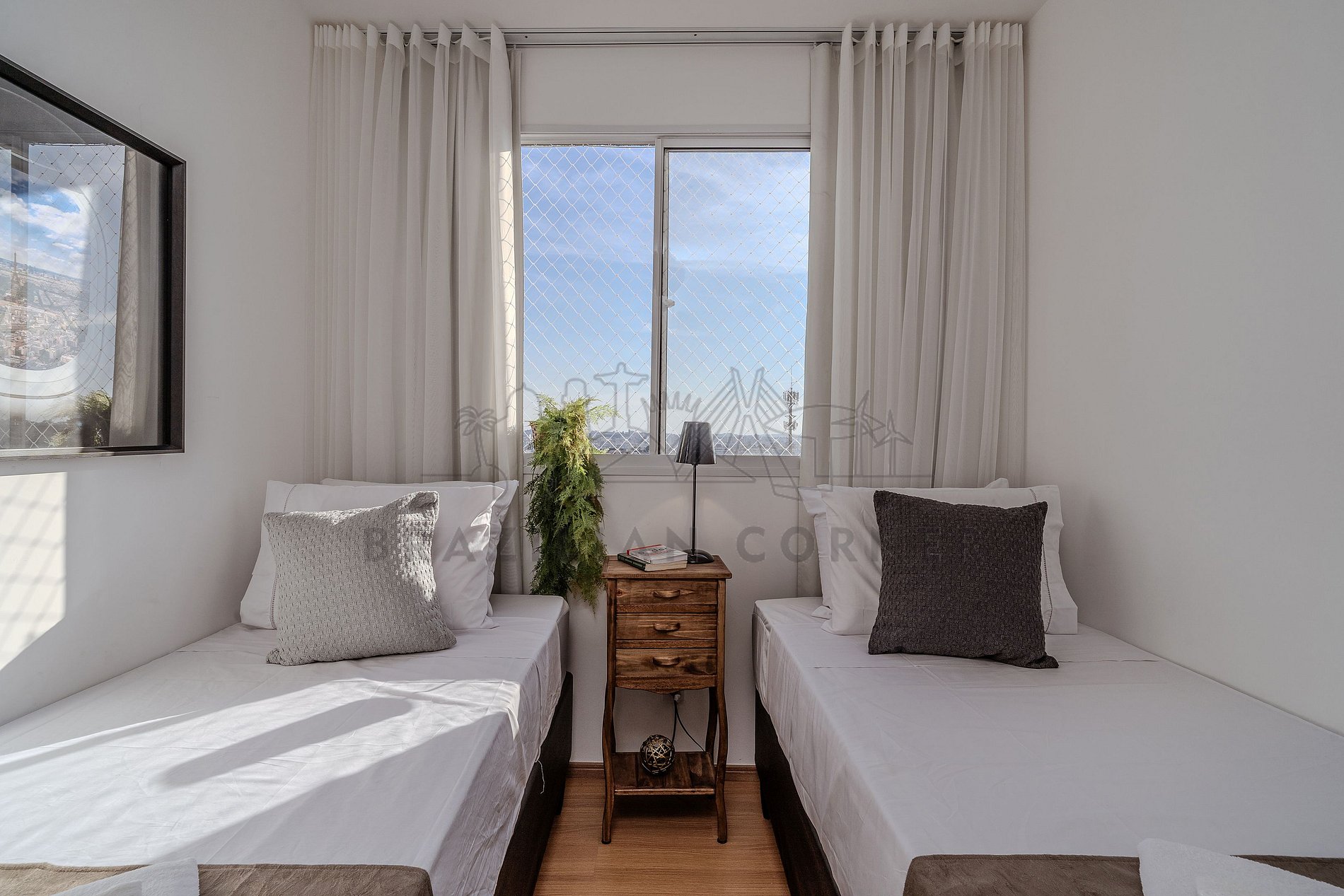 - 2 Camas de solteiro: aproveite a estadia com quem importa, disponibilizamos um quarto com duas camas de solteiro para aproveitar ao máximo temporada em família e as noites de sono.