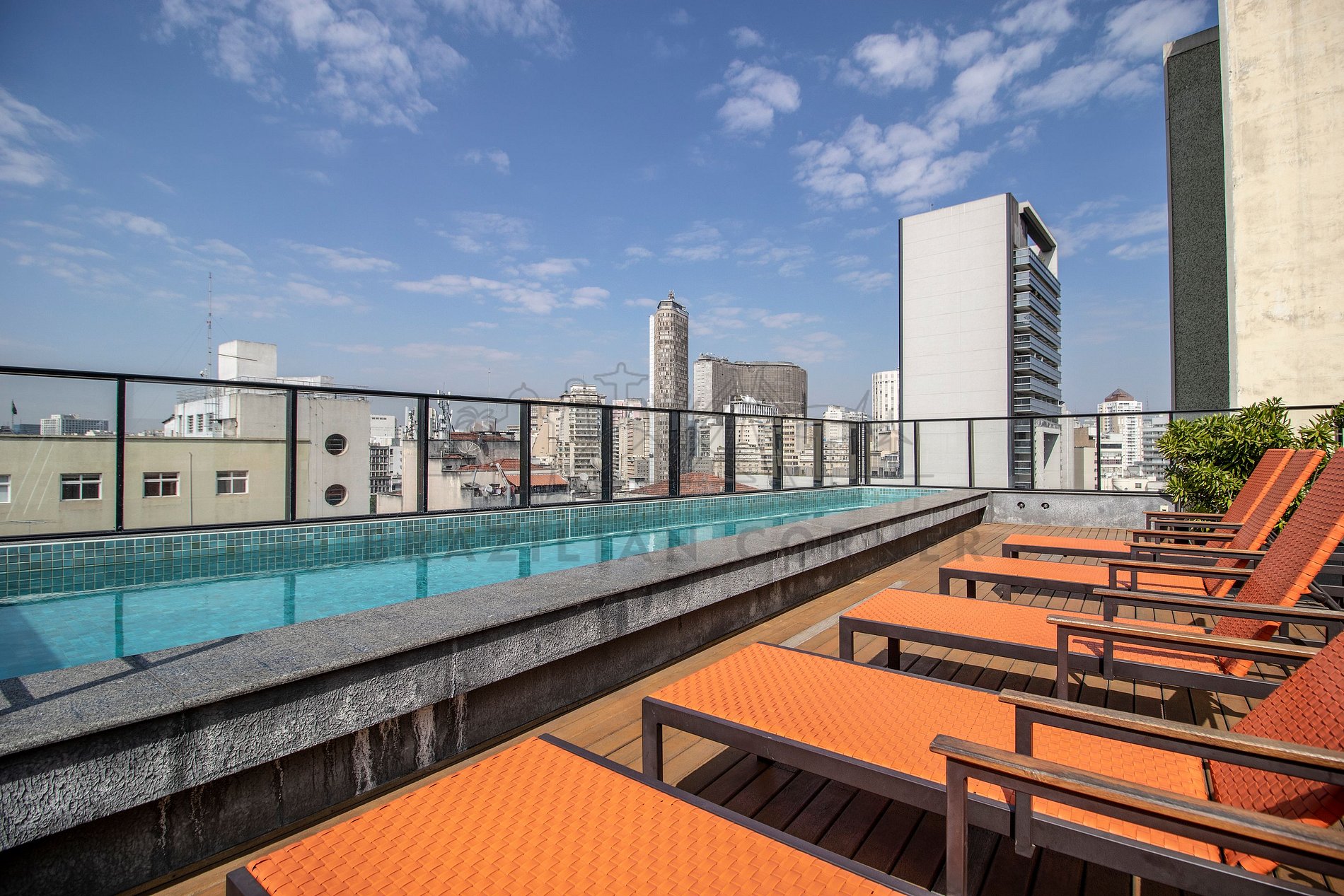 O prédio moderno fica próximo ao metrô da República (integrada com a linha 3 Vermelha e linha 4 Amarela). Os estúdios são bem equipados com Smart TV de 43", ar condicionado, cortina blackout, internet ultra-veloz, fechadura digital, cozinha completa com cafeteira Nespresso e banheiro com secador de cabelo e chuveiro a gás. O edifício disponibiliza piscina, academia, sauna, lavanderia, um mercadinho e vaga de garagem para a sua comodidade.