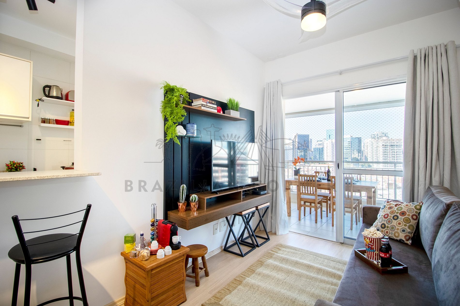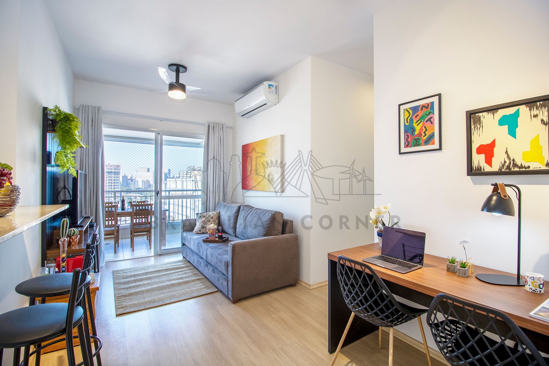 Com 70 m², o sofisticado e bem iluminado apartamento fica na Rua Paes Leme, coração de Pinheiros, é um bairro nobre e muito descolado. Ele tem o espaço ideal para uma temporada na cidade de São Paulo, e é muito bem equipado com SmartTV, ar condicionado, blackout na janela, internet Ultra-veloz, suíte com cama queen-size, varanda com uma linda vista, e cozinha completa. O banheiro conta com um ótimo secador de cabelo e chuveiro a gás. O prédio tem muita estrutura de lazer para toda a família.