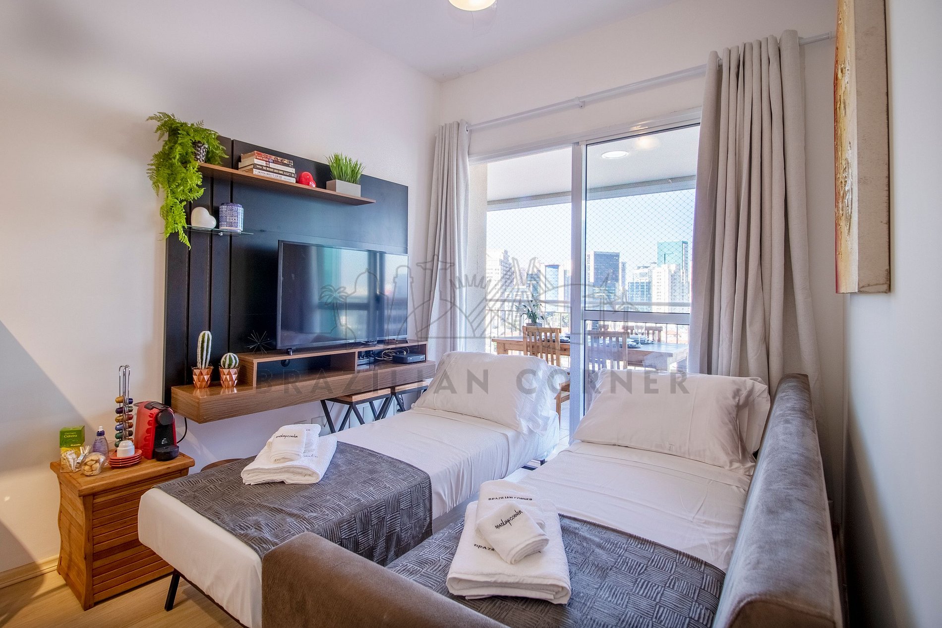 Com 70 m², o sofisticado e bem iluminado apartamento fica na Rua Paes Leme, coração de Pinheiros, é um bairro nobre e muito descolado. Ele tem o espaço ideal para uma temporada na cidade de São Paulo, e é muito bem equipado com SmartTV, ar condicionado, blackout na janela, internet Ultra-veloz, suíte com cama queen-size, varanda com uma linda vista, e cozinha completa. O banheiro conta com um ótimo secador de cabelo e chuveiro a gás. O prédio tem muita estrutura de lazer para toda a família.