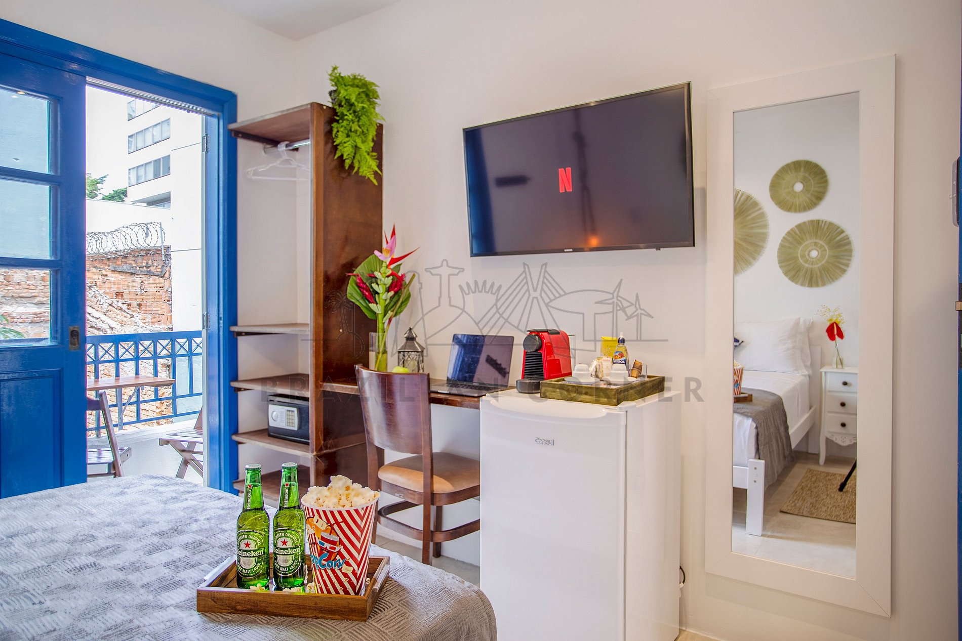 Com arquitetura grega, os estúdios estão localizados em Higienópolis, um bairro nobre de São Paulo, próximo à estação de metrô Higienópolis (Linha 4 - Amarela), e próximo de ótimos bares e restaurantes locais. Com um belo jardim e um agradável solário, o edifício de atmosfera mediterrânea é um verdadeiro oásis na região, proporcionando uma experiência única. Os imóveis estão equipados com Smart TV, cozinha, espaço de trabalho, internet ultra-veloz, cama de casal e ventilador de teto.