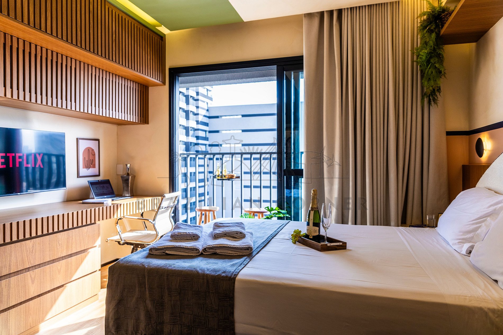 O Imóvel é administrado pela Brazilian Corner, uma empresa nacional que oferece aos seus clientes, que viajam a lazer ou negócios, a experiência de locar imóveis únicos durante uma temporada. As residências são planejadas para prover grande conforto. Nosso escritório fica no bairro Vila Madalena em São Paulo. Desde 2018, a Brazilian Corner é pioneira em seu ramo, pois além de proporcionar imóveis bem estruturados, também é responsável por toda a logística e suprimentos básicos que compõe cada uma de suas residências, o que as torna extremamente funcionais. Nosso grande diferencial é a boa comunicação e a seriedade com que atuamos para resolver qualquer entrave que possa acontecer antes, durante, e/ou após a estadia de nossos clientes. Nossos colaboradores são treinados e têm as ferramentas necessárias para proporcionar um excelente nível de serviço. Os apartamentos e casas são limpos por nossas equipes especializadas, a nossa roupa de cama e banho são lavadas e higienizadas em lavanderias profissionais. Mantemos o profissionalismo em tudo o que fazemos para, dessa forma, garantir a tranquilidade e confiança de nossos clientes.