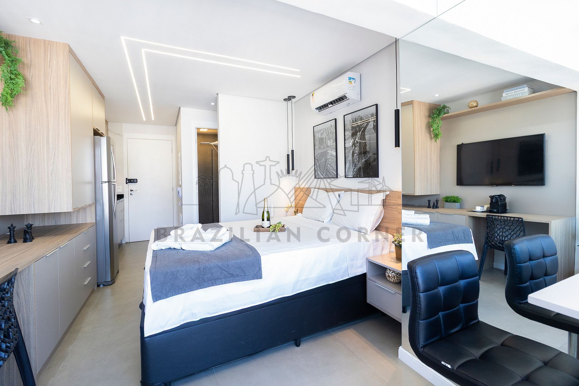 O Imóvel é administrado pela Brazilian Corner, uma empresa nacional que oferece aos seus clientes, que viajam a lazer ou negócios, a experiência de locar imóveis únicos durante uma temporada. As residências são planejadas para prover grande conforto. Nosso escritório fica no bairro Vila Madalena em São Paulo. Desde 2018, a Brazilian Corner é pioneira em seu ramo, pois além de proporcionar imóveis bem estruturados, também é responsável por toda a logística e suprimentos básicos que compõem cada uma de suas residências, o que as torna extremamente funcionais. Nosso grande diferencial é a boa comunicação e a seriedade com que atuamos para resolver qualquer entrave que possa acontecer antes, durante, e/ou após a estadia de nossos clientes. Nossos colaboradores são treinados e têm as ferramentas necessárias para proporcionar um excelente nível de serviço. Os apartamentos e casas são limpos por nossas equipes especializadas, a nossas roupas de cama e banho são de alta qualidade, e são lavadas e higienizadas em lavanderias profissionais. Mantemos o profissionalismo em tudo o que fazemos para, dessa forma, garantir a tranquilidade e confiança de nossos clientes.