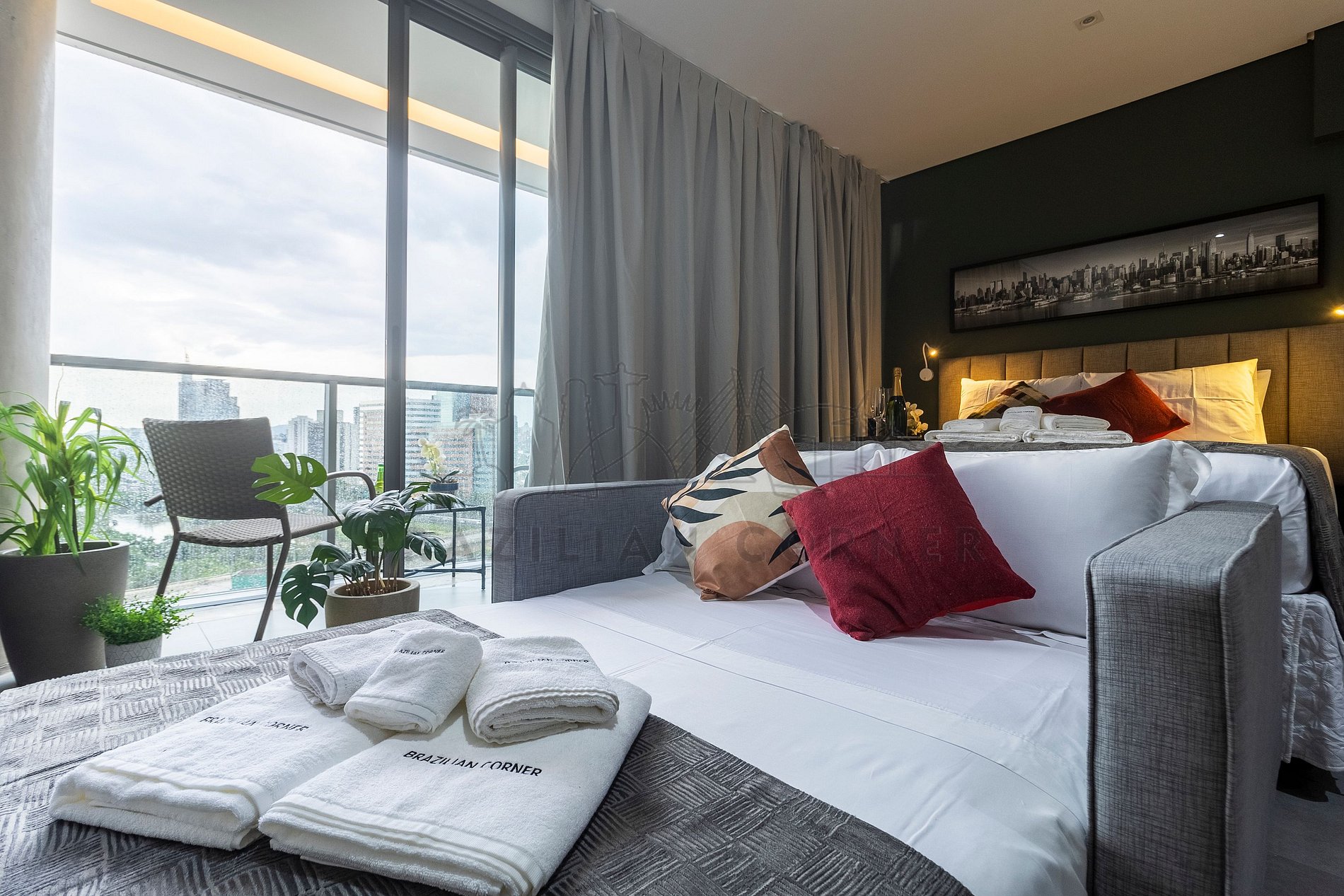 O Imóvel é administrado pela Brazilian Corner, uma empresa nacional que oferece aos seus clientes, que viajam a lazer ou negócios, a experiência de locar imóveis únicos durante uma temporada. As residências são planejadas para prover grande conforto. Nosso escritório fica no bairro Vila Madalena em São Paulo. Desde 2018, a Brazilian Corner é pioneira em seu ramo, pois além de proporcionar imóveis bem estruturados, também é responsável por toda a logística e suprimentos básicos que compõem cada uma de suas residências, o que as torna extremamente funcionais. Nosso grande diferencial é a boa comunicação e a seriedade com que atuamos para resolver qualquer entrave que possa acontecer antes, durante, e/ou após a estadia de nossos clientes. Nossos colaboradores são treinados e têm as ferramentas necessárias para proporcionar um excelente nível de serviço. Os apartamentos e casas são limpos por nossas equipes especializadas, a nossas roupas de cama e banho são lavadas e higienizadas em lavanderias profissionais. Mantemos o profissionalismo em tudo o que fazemos para, dessa forma, garantir a tranquilidade e confiança de nossos clientes.
