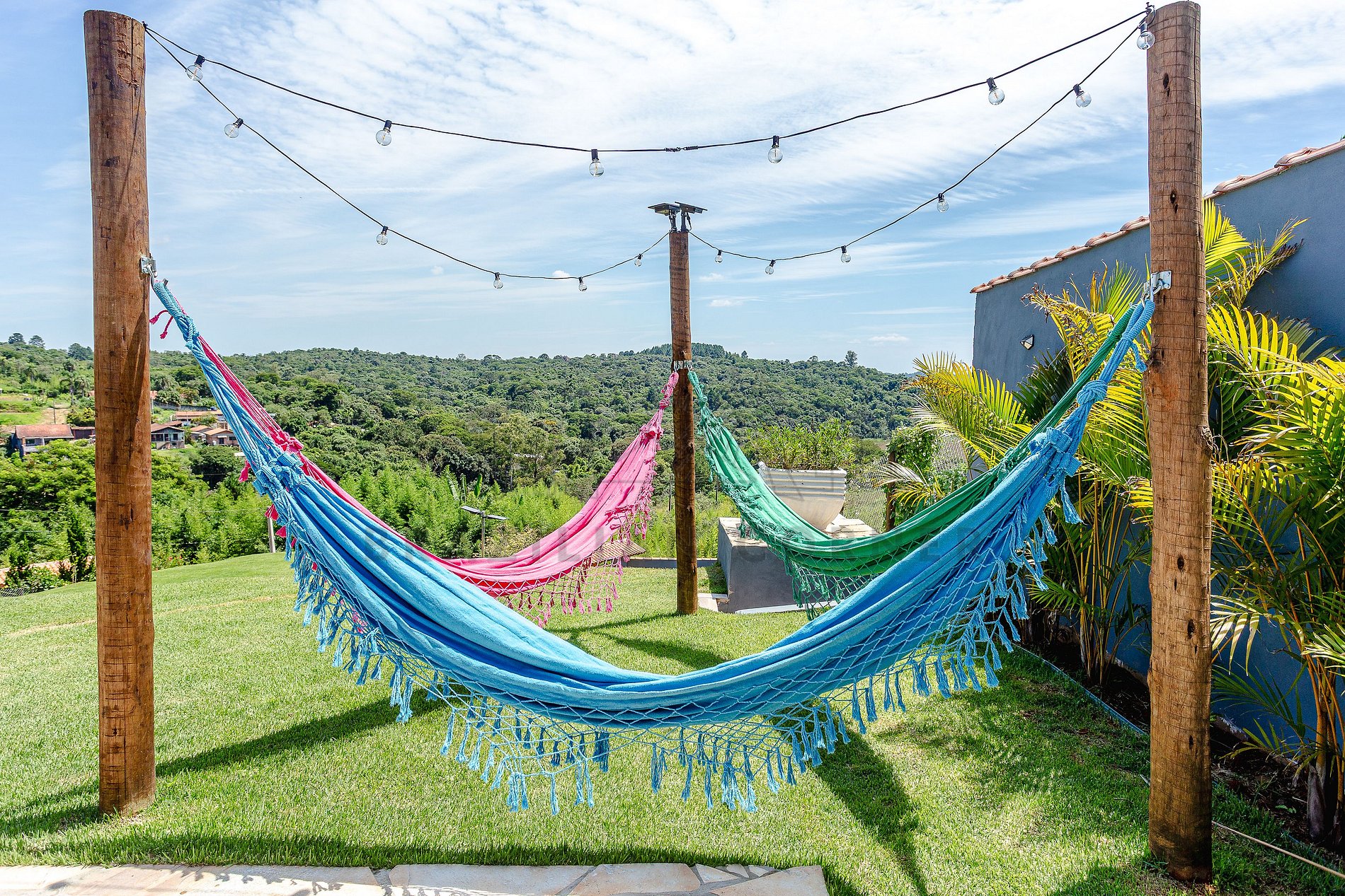- Redário:Nossa casa oferece um lugar especial com 3 redes. Aproveite os momentos de descanso e relaxamento em uma das redes confortáveis. Nada melhor do que balançar suavemente, enquanto lê um livro, ouve sua música preferida ou apenas aproveita cada minuto para recarregar as energias e revigorar a mente.