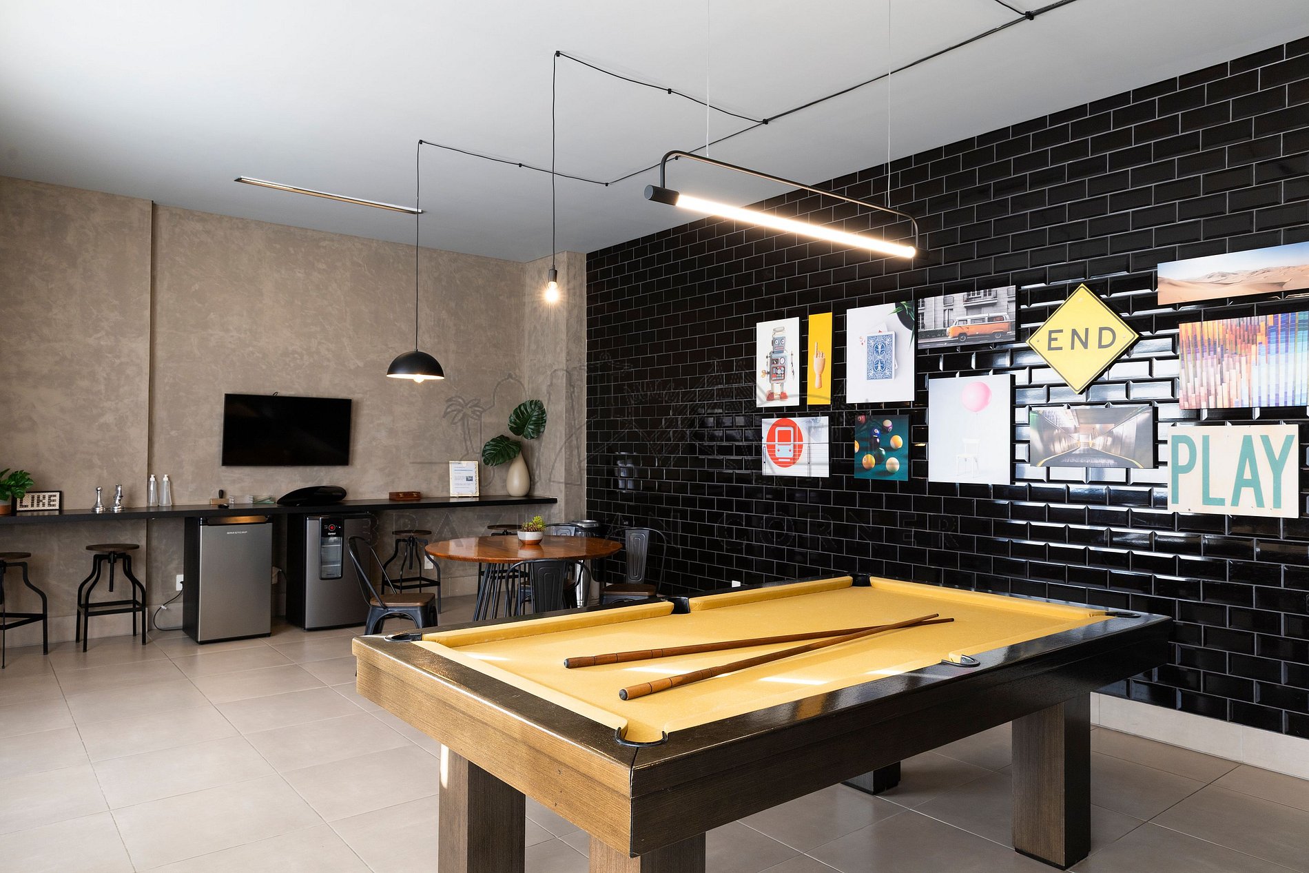 - Salão de Jogos: Com o salão de jogos equipado com mesa de sinuca, todos têm a oportunidade de se divertir e relaxar com amigos e familiares. Essas atividades proporcionam momentos de descontração e interação social.