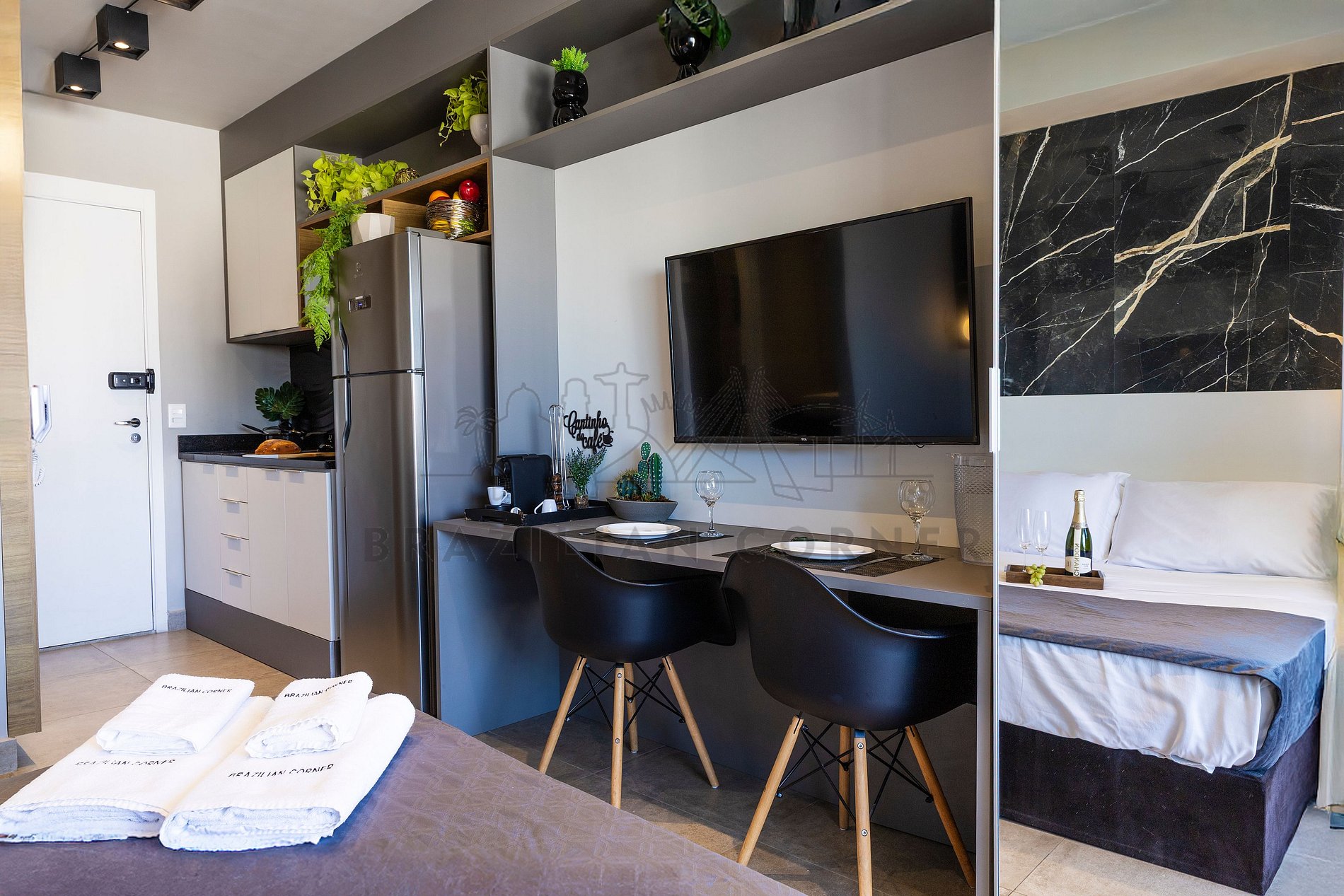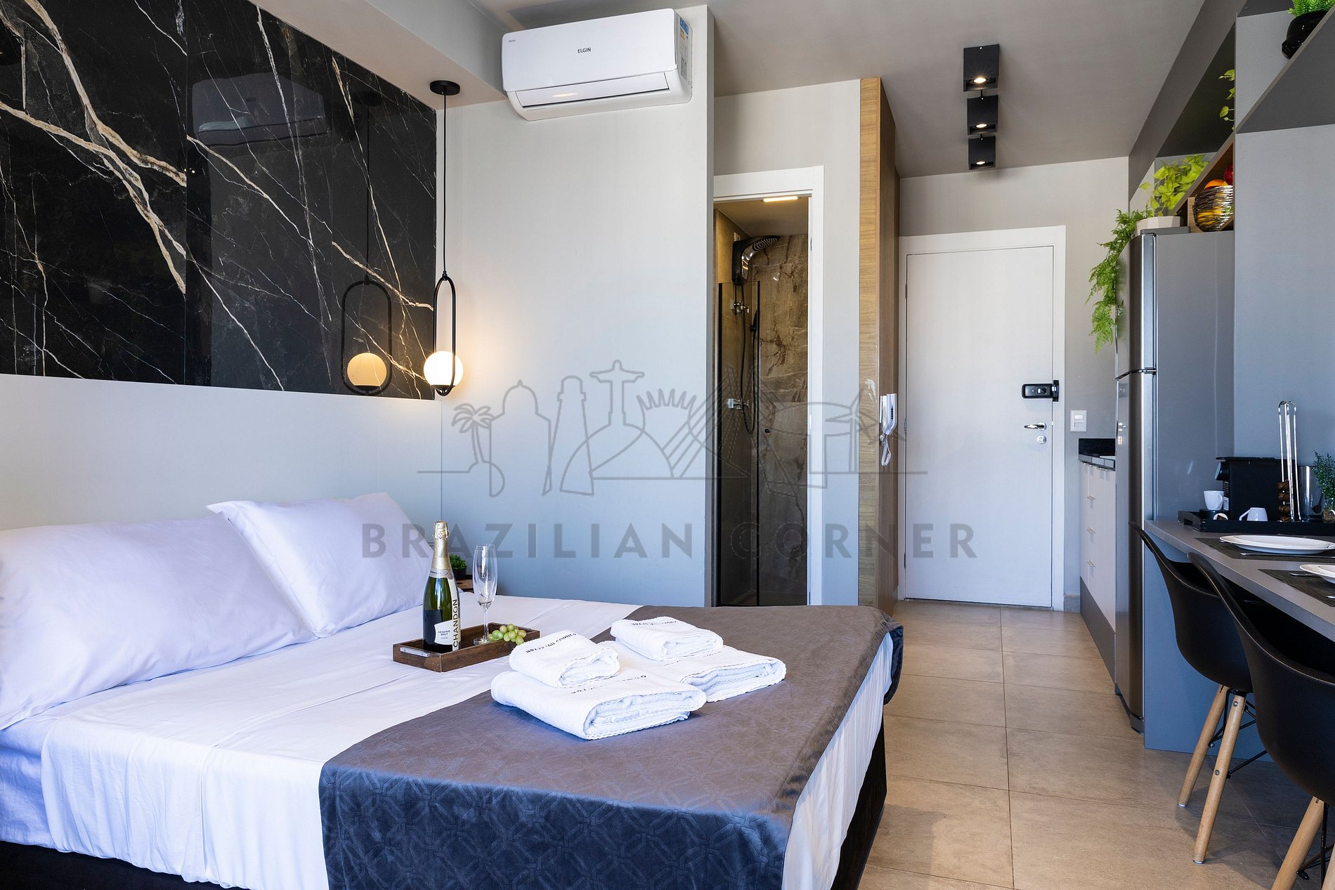 O Imóvel é administrado pela Brazilian Corner, uma empresa nacional que oferece aos seus clientes, que viajam a lazer ou negócios, a experiência de locar imóveis únicos durante uma temporada. As residências são planejadas para prover grande conforto. Nosso escritório fica no bairro Vila Madalena em São Paulo. Desde 2018, a Brazilian Corner é pioneira em seu ramo, pois além de proporcionar imóveis bem estruturados, também é responsável por toda a logística e suprimentos básicos que compõem cada uma de suas residências, o que as torna extremamente funcionais. Nosso grande diferencial é a boa comunicação e a seriedade com que atuamos para resolver qualquer entrave que possa acontecer antes, durante, e/ou após a estadia de nossos clientes. Nossos colaboradores são treinados e têm as ferramentas necessárias para proporcionar um excelente nível de serviço. Os apartamentos e casas são limpos por nossas equipes especializadas, a nossas roupas de cama e banho são de alta qualidade, e são lavadas e higienizadas em lavanderias profissionais. Mantemos o profissionalismo em tudo o que fazemos para, dessa forma, garantir a tranquilidade e confiança de nossos clientes.