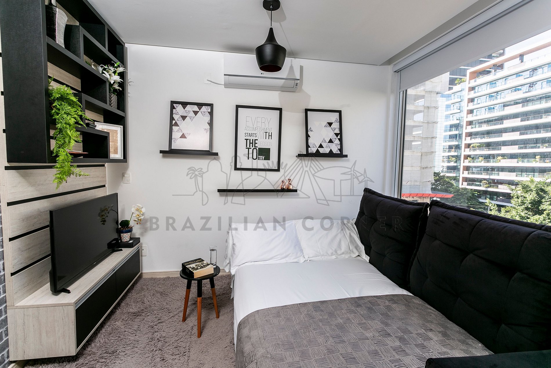 Apartamento moderno localizado no Itaim Bibi, bairro nobre e cultural. Oferece o espaço ideal para uma temporada perfeita na cidade de São Paulo. Ele é muito bem equipado com Smart TV com Netflix, cortina blackout, fechadura digital, ar condicionado, internet ultra-veloz, cozinha completa com todos os utensílios necessários e uma máquina Nespresso, o banheiro conta com um ótimo secador de cabelo e chuveiro a gás. O prédio disponibiliza piscina, academia, lavanderia, sauna e vaga de garagem.