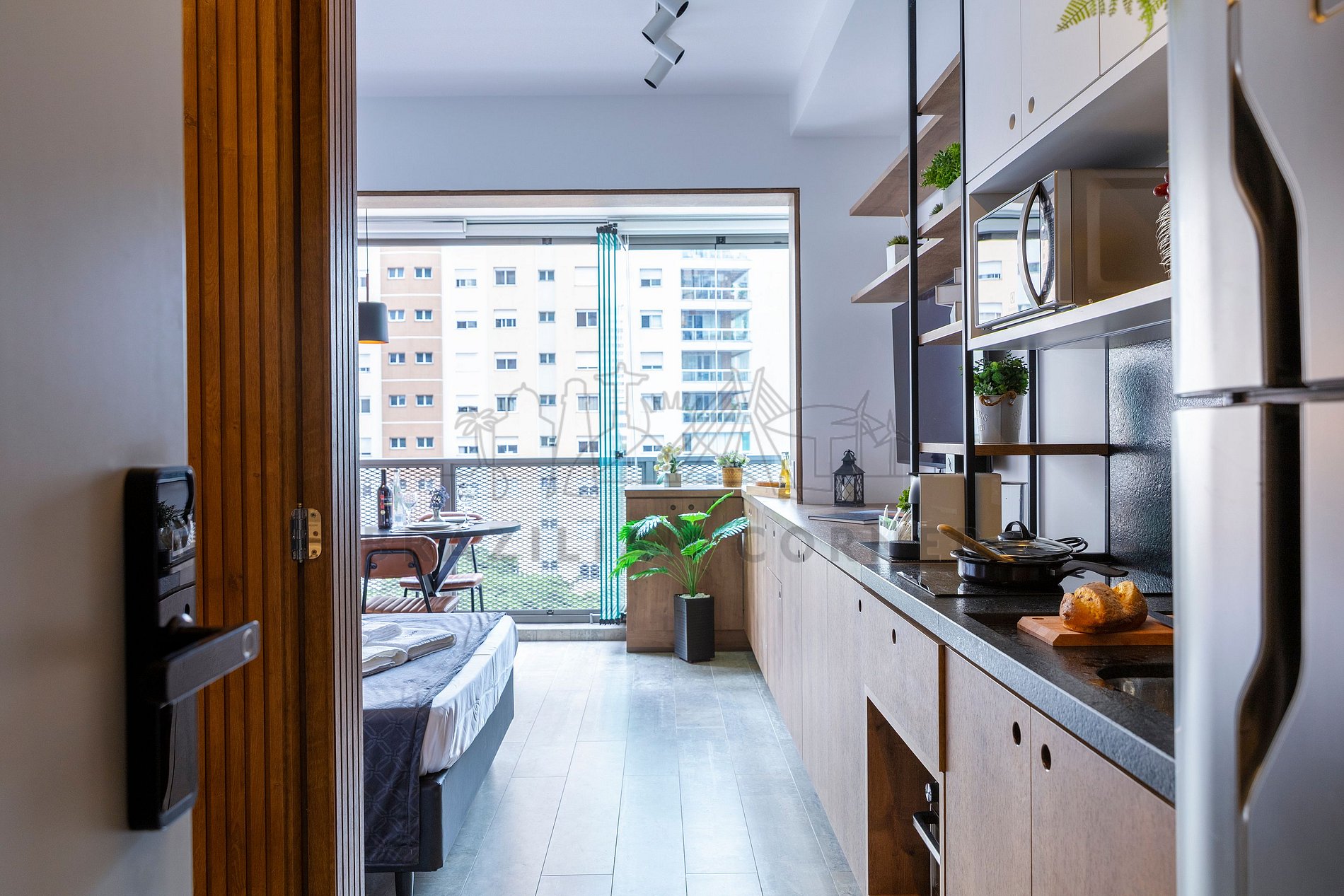 - Cook top: Sinta-se em casa na nossa cozinha, completa com um moderno cook top de indução de 2 bocas, proporcionando a flexibilidade para preparar suas refeições favoritas. Seja um mestre culinário ou alguém que gosta de experimentar novos sabores, você terá tudo o que precisa à sua disposição.