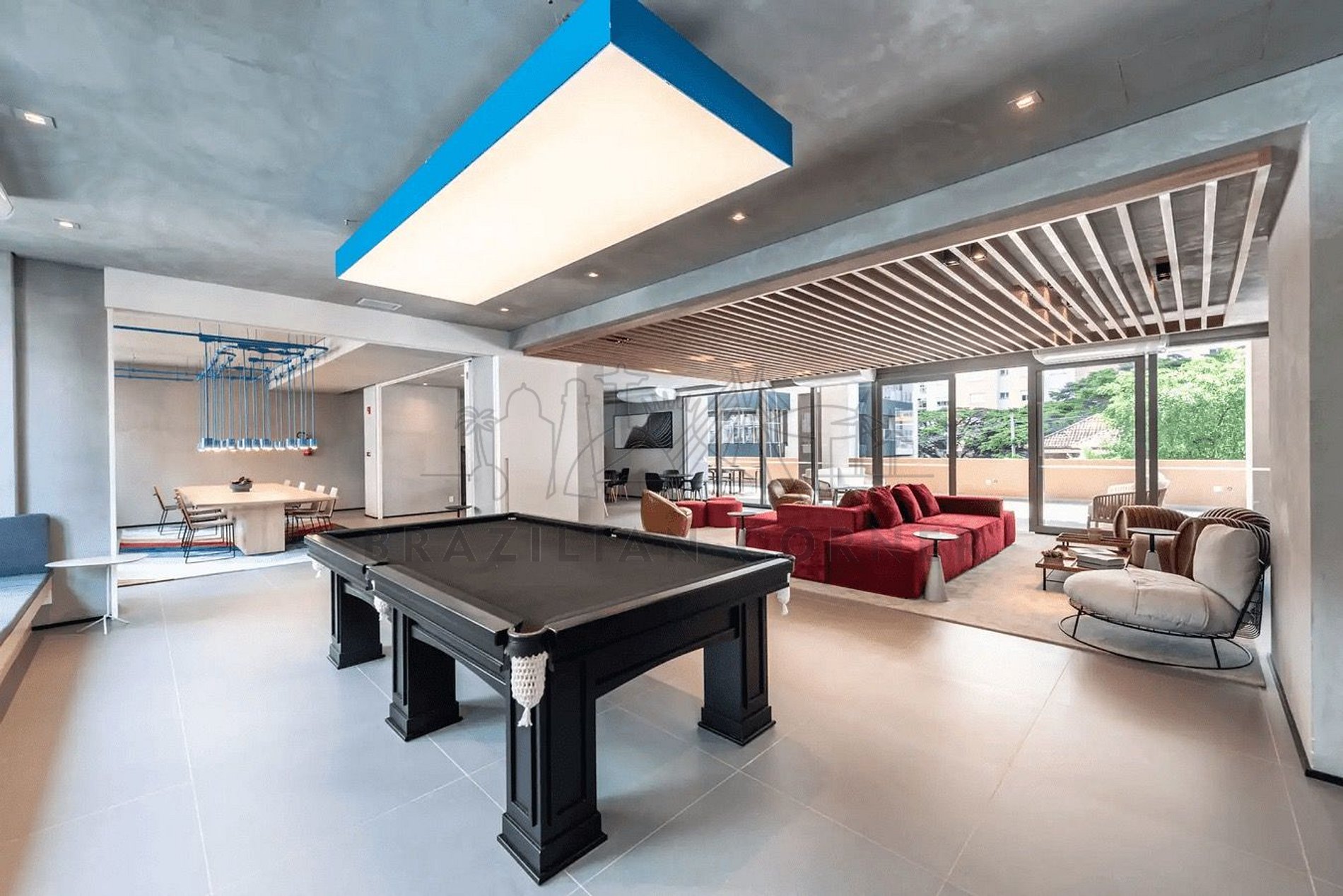 - Salão de Jogos: Com o salão de jogos equipado com mesa de sinuca , todos têm a oportunidade de se divertir e relaxar com amigos e familiares. Essa atividade proporciona momentos de descontração e interação social.