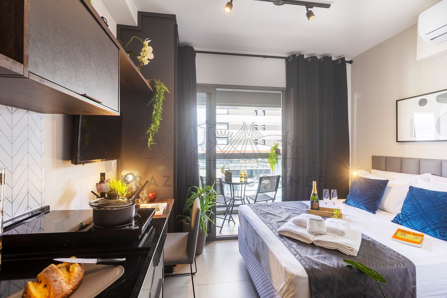 O charmosos studio está localizado em uma das regiões mais cobiçadas da cidade a apenas 50 metros da estação Oscar Freire do metrô e 15 minutos a pé da Avenida Paulista. O espaço conta com SmartTV, cozinha compacta e bem equipada, espaço de trabalho, internet ultra-veloz, ar-condicionado, ideal para uma confortável estadia. A região oferece pontos turísticos, como o MASP, o Museu da Imagem e do Som e a própria rua Oscar Freire famosa por suas lojas luxuosas e renomadas.
