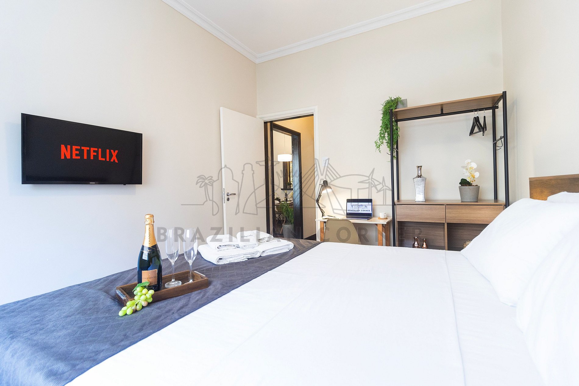 - Cortinas Blackout: Uma boa noite de sono é essencial. Por isso, em todos os quartos da nossa locação, você encontrará cortinas blackout, garantindo um ambiente escuro e silencioso para um descanso revigorante.