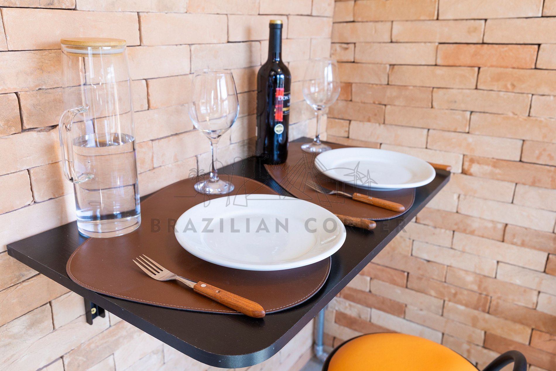 - Mesa retrátil: compartilhe momentos especiais durante sua estadia em torno de uma mesa aconchegante. Nossa mesa de jantar comporta até 1 pessoa, tendo a opção, caso necessário, de utilizar a mesa de canto para a segunda pessoa.