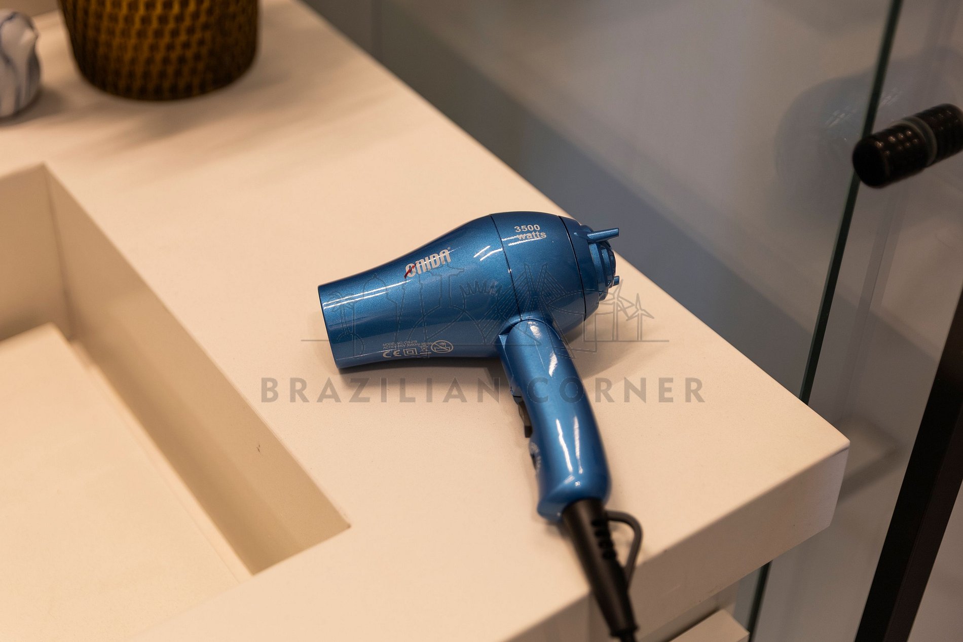 - Secador de Cabelo: Para sua conveniência, disponibilizamos um secador de cabelo de qualidade em nosso imóvel. Dessa forma, você não precisa se preocupar em trazer o seu, permitindo que você viaje mais leve e confortável.