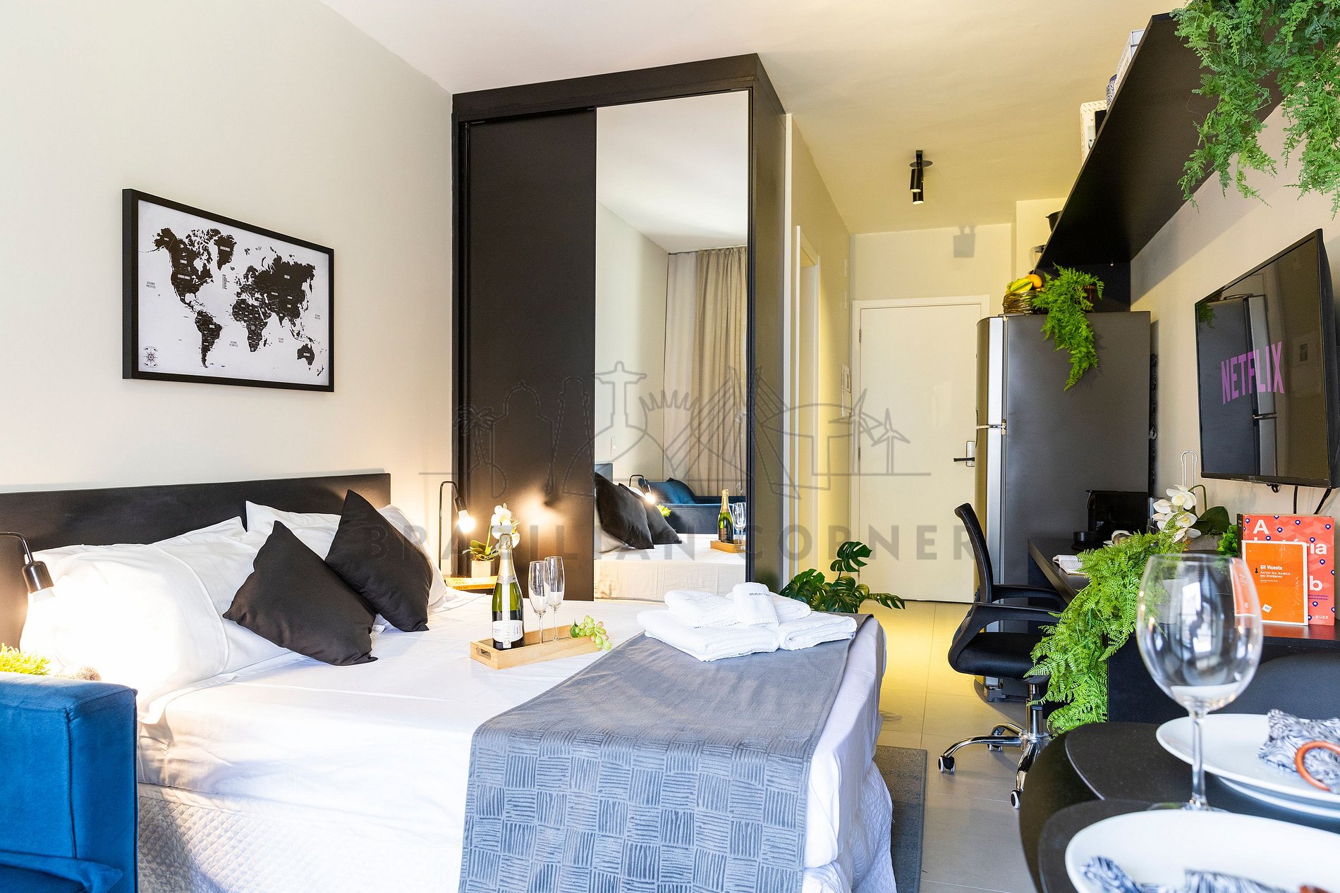 O Imóvel é administrado pela Brazilian Corner, uma empresa nacional que oferece aos seus clientes, que viajam a lazer ou negócios, a experiência de locar imóveis únicos durante uma temporada. As residências são planejadas para prover grande conforto. Nosso escritório fica no bairro Vila Madalena em São Paulo. Desde 2018, a Brazilian Corner é pioneira em seu ramo, pois além de proporcionar imóveis bem estruturados, também é responsável por toda a logística e suprimentos básicos que compõe cada uma de suas residências, o que as torna extremamente funcionais. Nosso grande diferencial é a boa comunicação e a seriedade com que atuamos para resolver qualquer entrave que possa acontecer antes, durante, e/ou após a estadia de nossos clientes. Nossos colaboradores são treinados e têm as ferramentas necessárias para proporcionar um excelente nível de serviço. Os apartamentos e casas são limpos por nossas equipes especializada, a nossa roupa de cama e banho são lavadas e higienizadas em lavanderias profissionais. Mantemos o profissionalismo em tudo o que fazemos para, dessa forma, garantir a tranquilidade e confiança de nossos clientes.