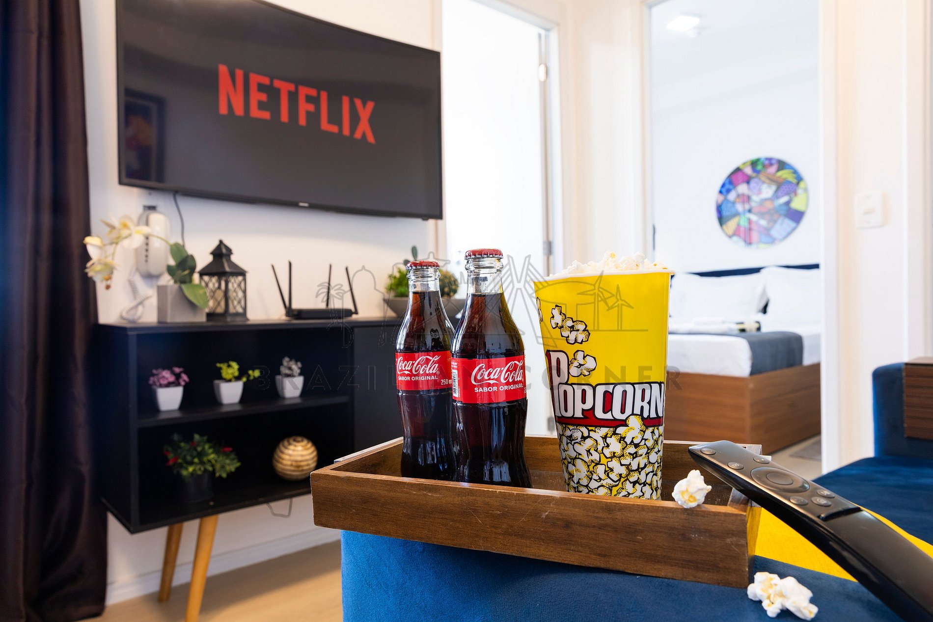 Imóvel administrado pela empresa profissional Brazilian Corner. Este apartamento de 30m² está localizado a apenas 5 minutos do aeroporto, ideal para uma temporada em São Paulo. O destaque fica para o escritório com cadeira ergonômica, e máquina Nespresso perfeito para quem precisa trabalhar. O imóvel conta ainda com ar-condicionado, Smart TV, internet, cozinha completa e cortinas blackout, garantindo conforto e comodidade. O condomínio conta com academia, coworking, playground, e espaço pet.