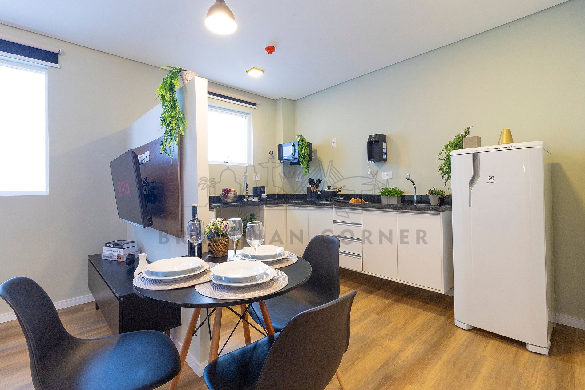 O Imóvel é administrado pela Brazilian Corner, uma empresa nacional que oferece aos seus clientes, que viajam a lazer ou negócios, a experiência de locar imóveis únicos durante uma temporada. As residências são planejadas para prover grande conforto. Nosso escritório fica no bairro Vila Madalena em São Paulo. Desde 2018, a Brazilian Corner é pioneira em seu ramo, pois além de proporcionar imóveis bem estruturados, também é responsável por toda a logística e suprimentos básicos que compõem cada uma de suas residências, o que as torna extremamente funcionais. Nosso grande diferencial é a boa comunicação e a seriedade com que atuamos para resolver qualquer entrave que possa acontecer antes, durante, e/ou após a estadia de nossos clientes. Nossos colaboradores são treinados e têm as ferramentas necessárias para proporcionar um excelente nível de serviço. Os apartamentos e casas são limpos por nossas equipes especializadas, a nossas roupas de cama e banho são de alta qualidade, e são lavadas e higienizadas em lavanderias profissionais. Mantemos o profissionalismo em tudo o que fazemos para, dessa forma, garantir a tranquilidade e confiança de nossos clientes.