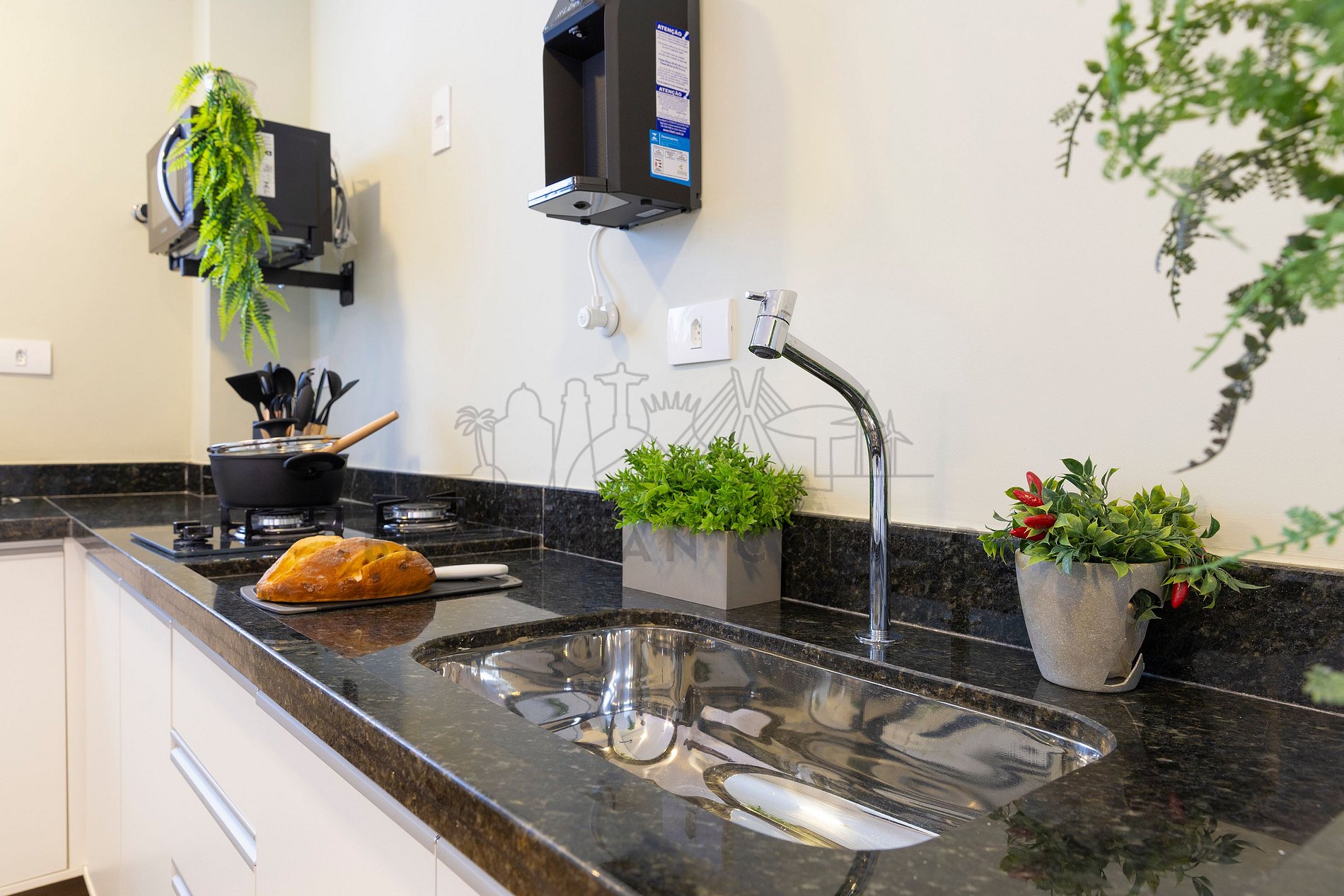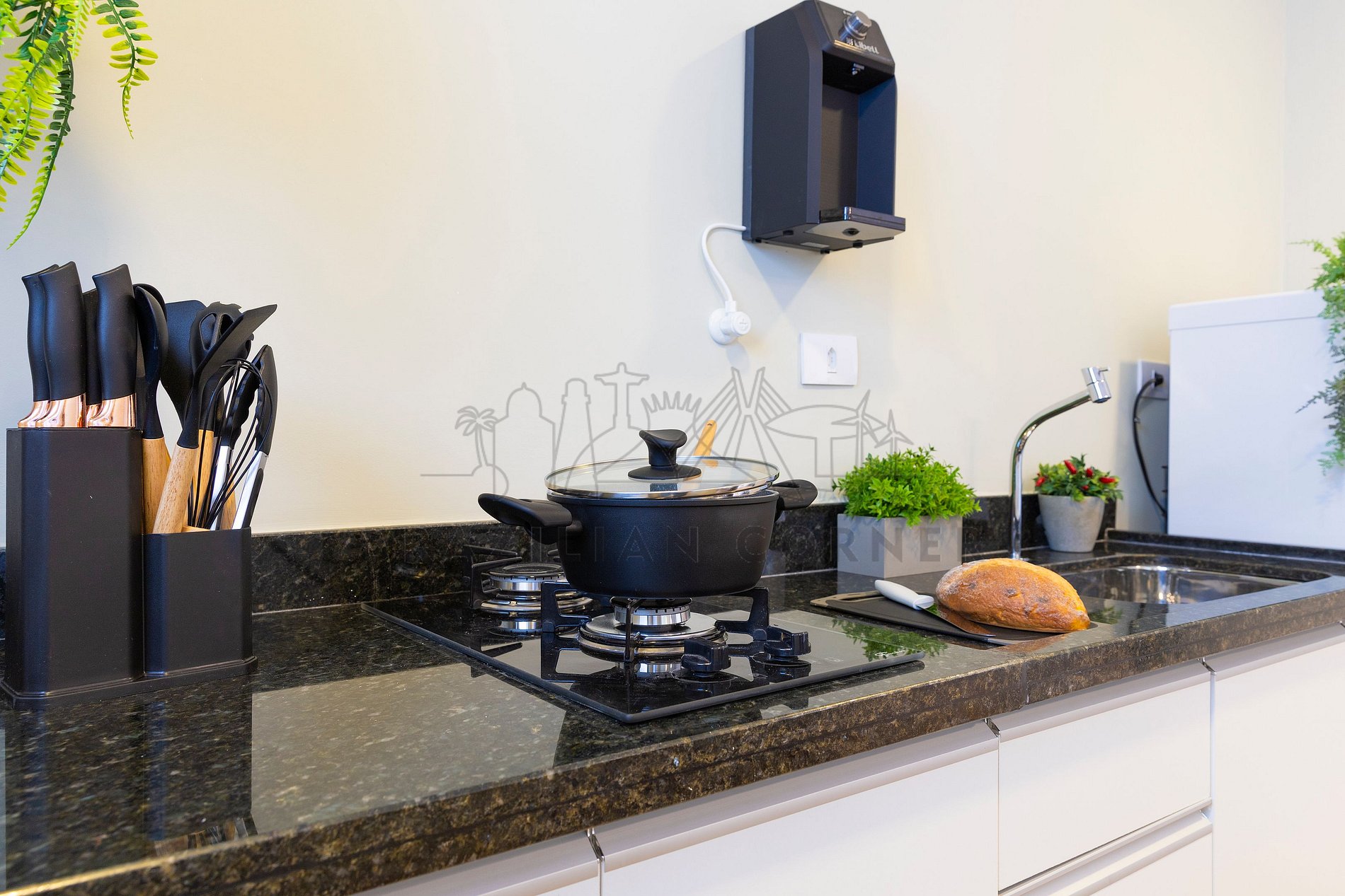 - Cooktop de 2 bocas: Sinta-se em casa na nossa cozinha, completa com um moderno cook top de 2 bocas, proporcionando a flexibilidade para preparar suas refeições favoritas. Seja um mestre culinário ou alguém que gosta de experimentar novos sabores, você terá tudo o que precisa à sua disposição.
